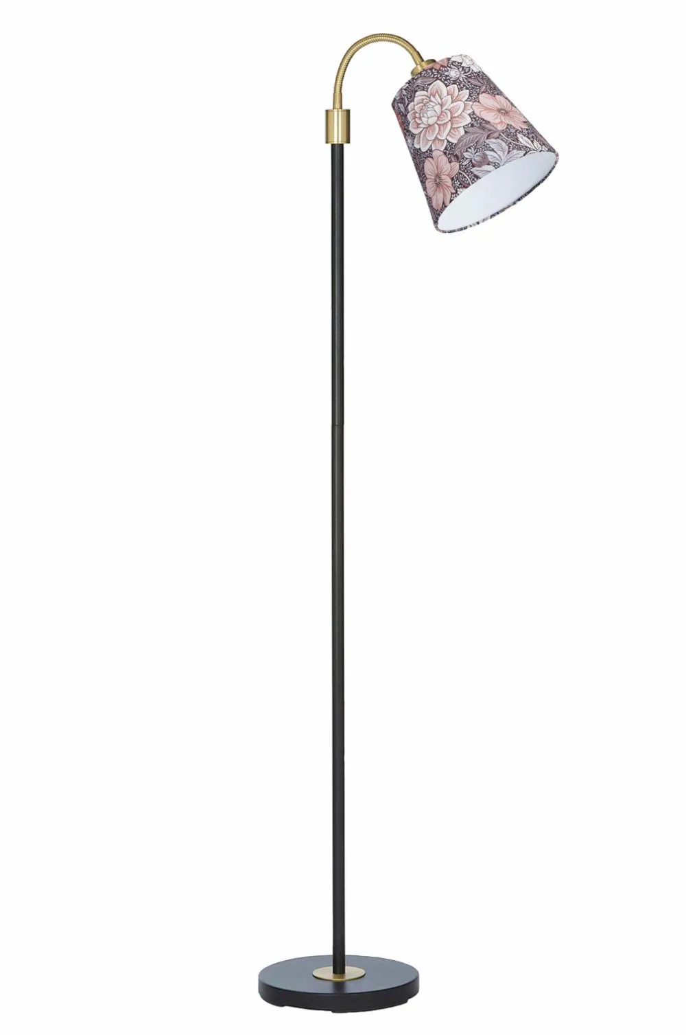 Gulvlampe amy flex i metal inklusive cia top fit-skærm. Skærmen har et mønster, i en rolig og beroligende farve, fra boråstapeter. Lampeskærmens mål: 20 cm i diameter forneden, 13 cm foroven og 19 cm i højden. E27 topmontering. Lampen leveres i knock-down-version og er nem at samle. Den øverste del af gulvlampen har en justerbar arm med e27-lampeholder, maks. 25w, hvor kontakten også er placeret. 190 cm lang ledning med vægudtag. Lyskilde købes separat. Højde 150 cm.