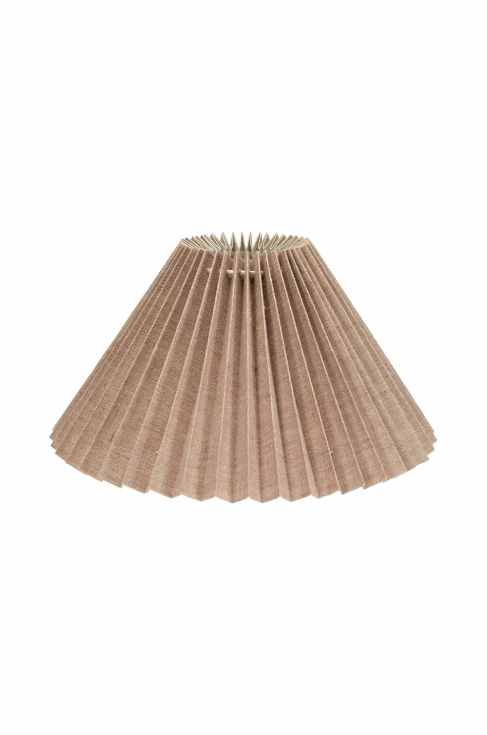 Ines er en plisseret lampeskærm i 100% hørstof, formen er let A-formet. E27-bærering som sidder 5 cm fra bunden. Den smarte vendbare bærering gør, at skærmen kan bruges både til lampefødder og loftophæng eller læselamper. Diameter foroven 11 cm, diameter forneden 30 cm, højde 17 cm.