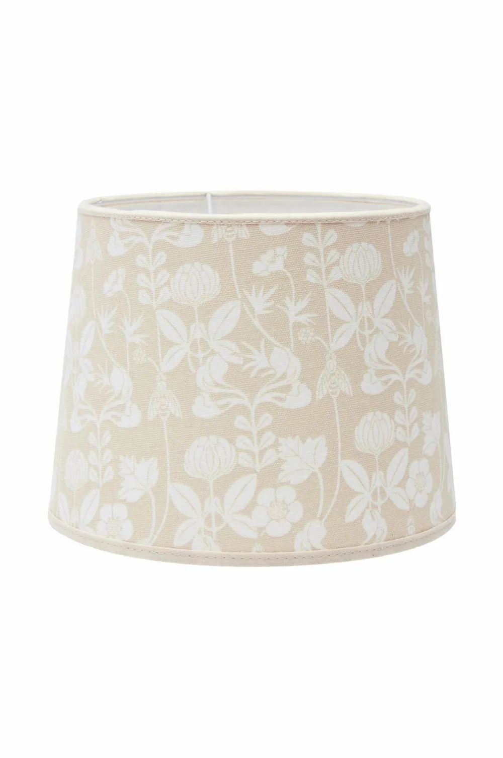 Sofia lampeskærm med mønstret print illustreret af Carl Larsson. Mønsteret findes som omslag til nogle af Carl Larssons bøger. Dette stof indgår i serien fra Carl Larsson. Skærmen har en lys inderside og matchende kantbånd. Formen er let A-formet og har en E27-holder. Lyskilde E27 købes separat.