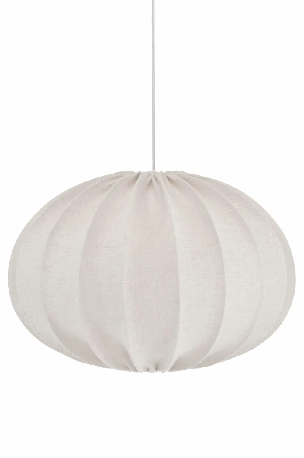 Loftskærmen Hilma giver et blødt indtryk i rummet, her klædt i et smukt hørstof med en fin struktur. Findes i flere farver og størrelser. Ledningssæt købes separat.