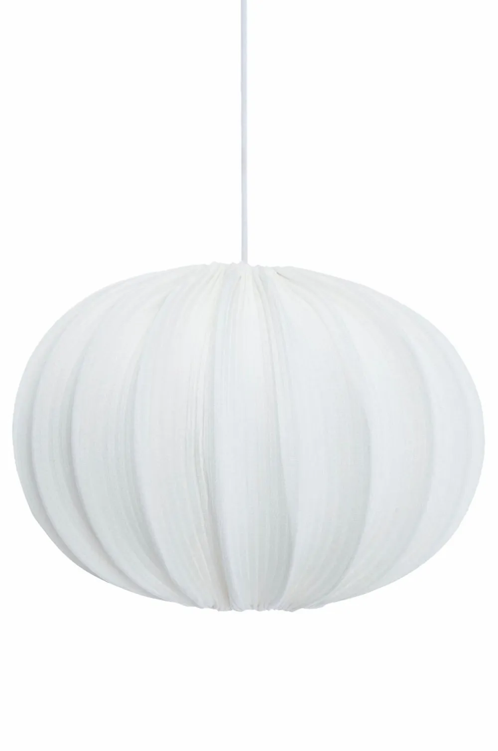 Hilma lampeskærm i jerseyrib. Den ribbede struktur giver et smukt skin, når lampen er tændt. Diameter 40 cm. Højde 28 cm. Ledning, loftkontakt og pære købes separat.