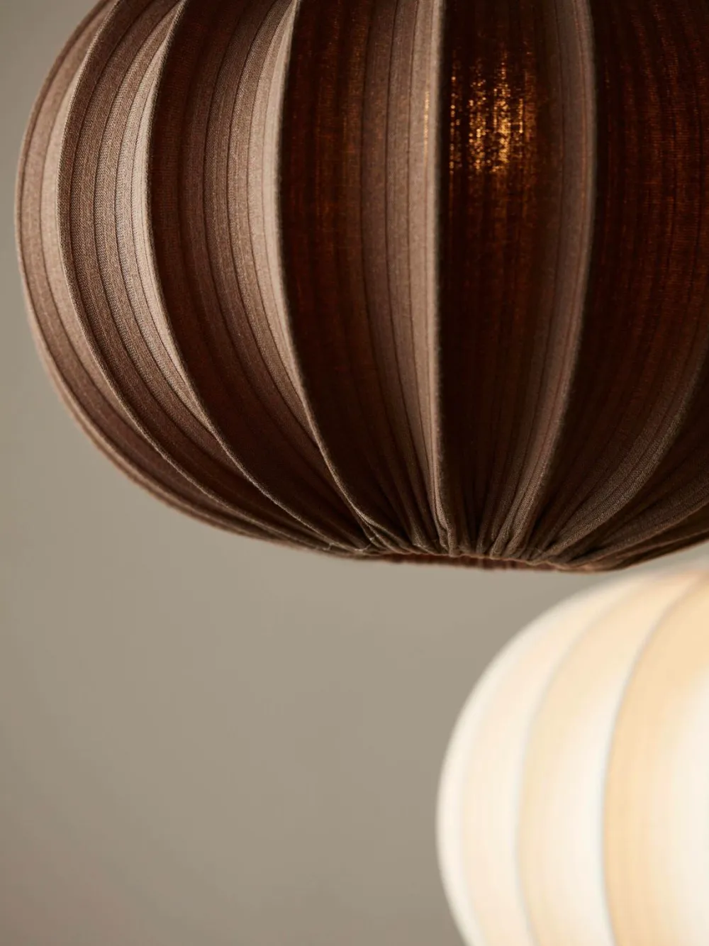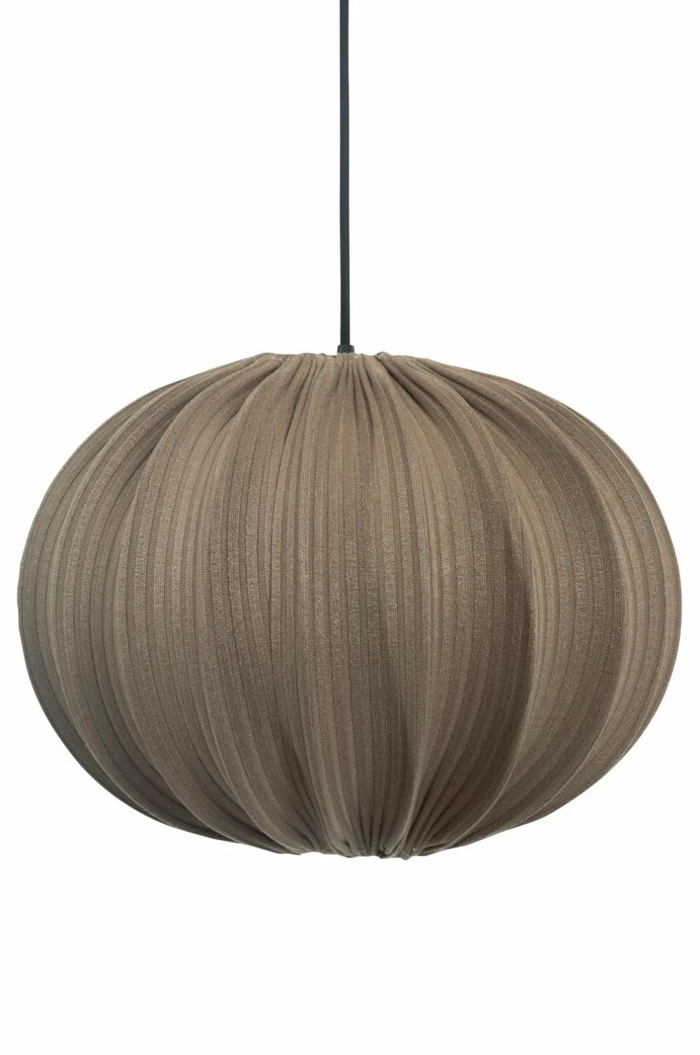 Hilma lampeskærm i jerseyrib. Den ribbede struktur giver et smukt skin, når lampen er tændt. Diameter 60 cm. Højde 42 cm. Ledning, loftkontakt og pære købes separat.