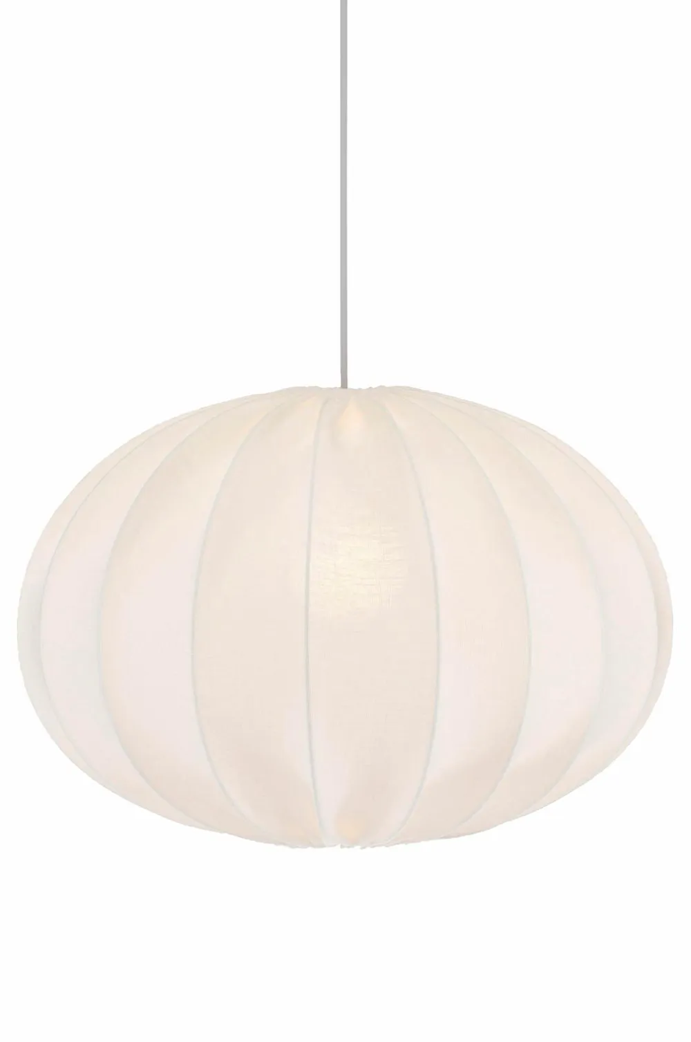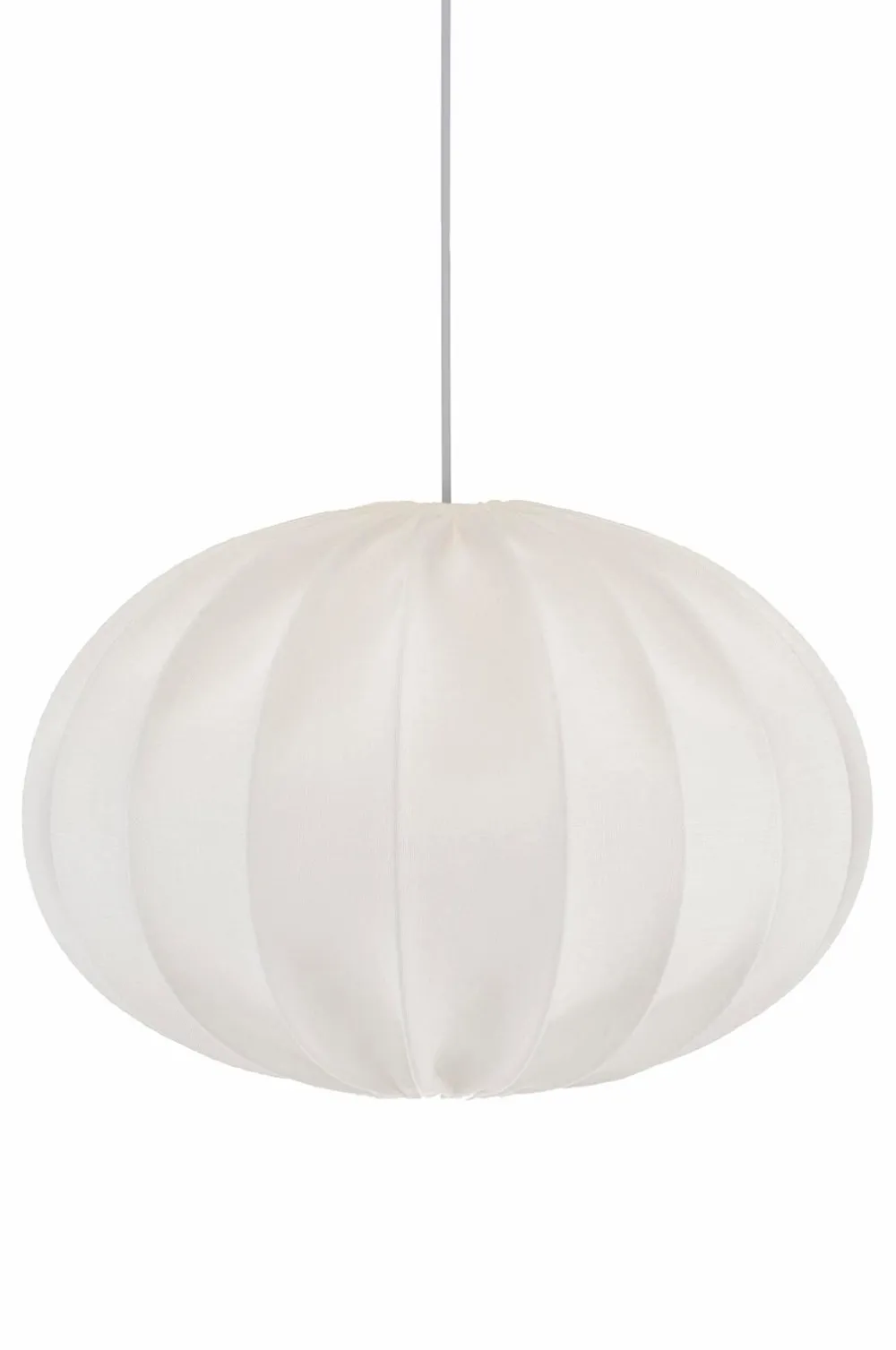 Loftskærmen Hilma giver et blødt indtryk i rummet, her klædt i et smukt hørstof med en fin struktur. Findes i flere farver og størrelser. Ledningssæt købes separat.