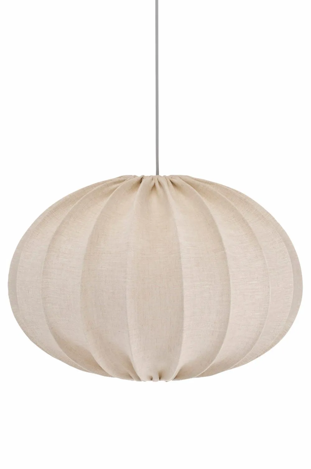 Loftskærmen Hilma giver et blødt indtryk i rummet, her klædt i et smukt hørstof med en fin struktur. Findes i flere farver og størrelser. Ledningssæt købes separat.