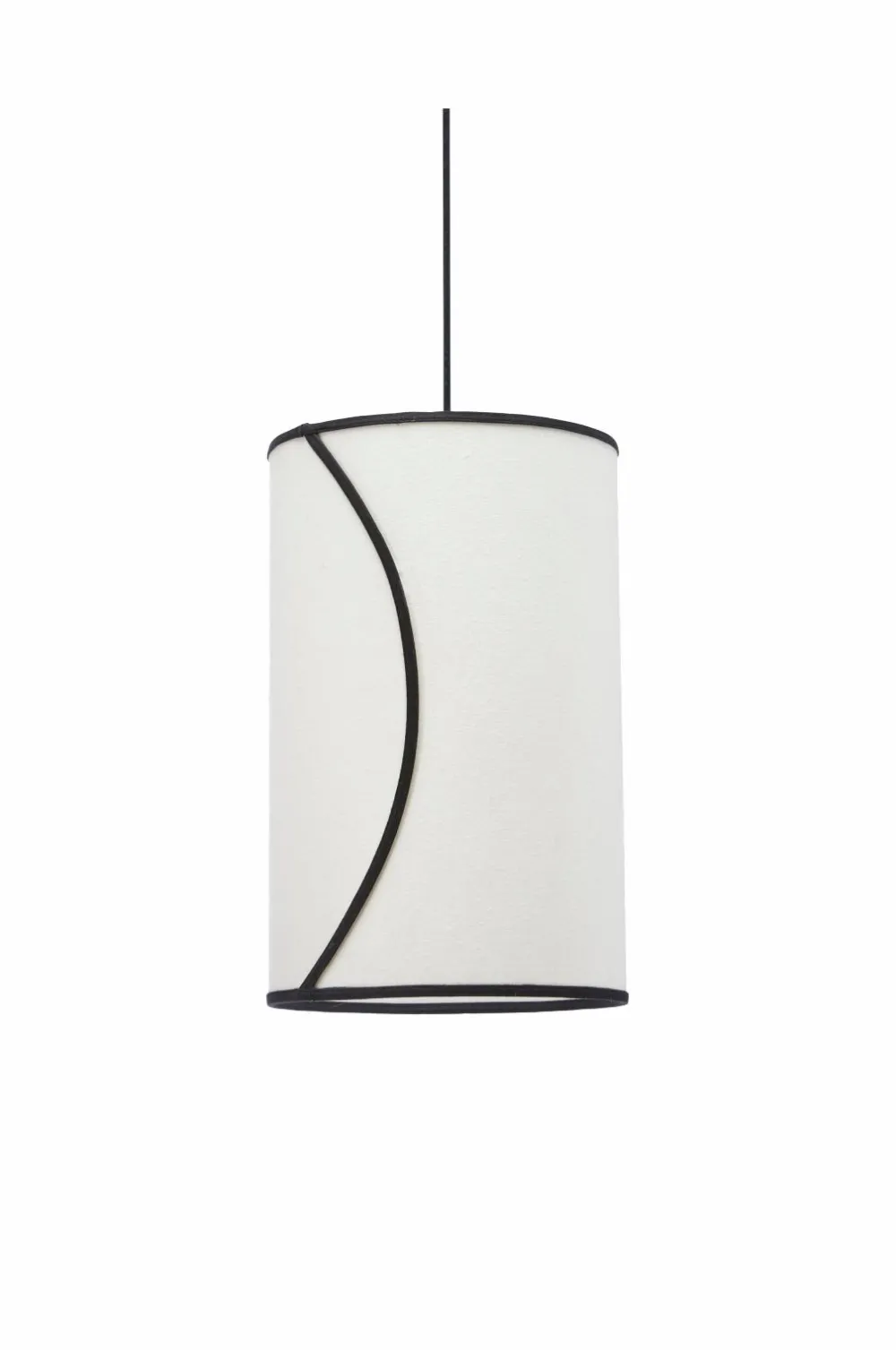 Pendelskærm ava. En cylinderformet pendelskærm i økologisk bomuldsstof. Når den er tændt, giver den et behageligt lys og er samtidig et blikfang. Diameter 25 cm, højde 40 cm. E27 topmontering. Kun lampeskærm, loftsophæng medfølger ikke. (Skærmen kan også bruges på en lampefod).