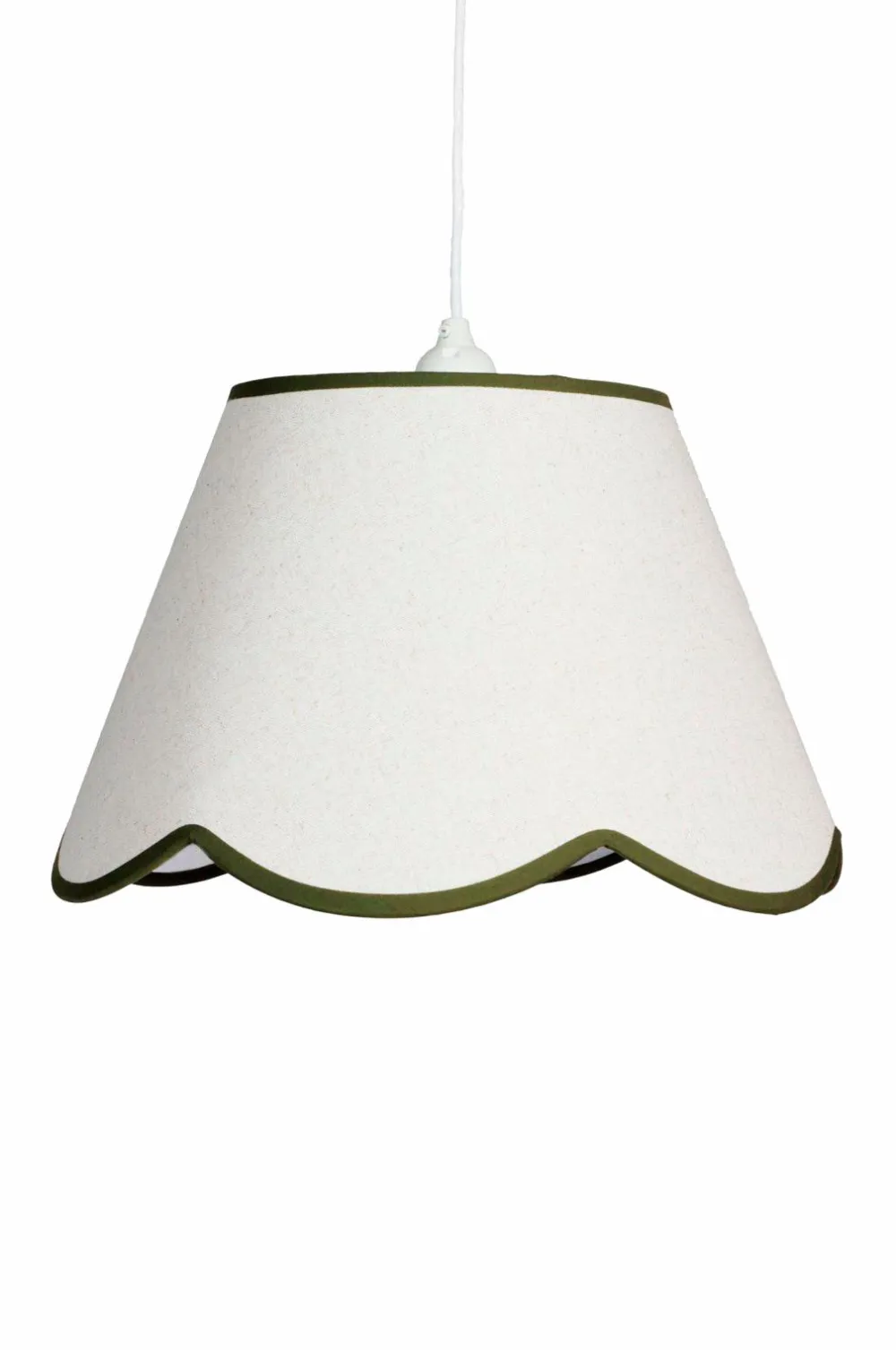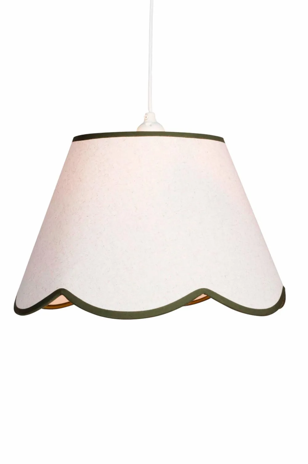 Denne smukke pendel i hørlignende stof blander klassisk form med moderne alsidighed. Med sin skulpterede underkant og bløde tekstur giver den et elegant touch til ethvert rum. Den sælges sammen med et hvidt ledningssæt.