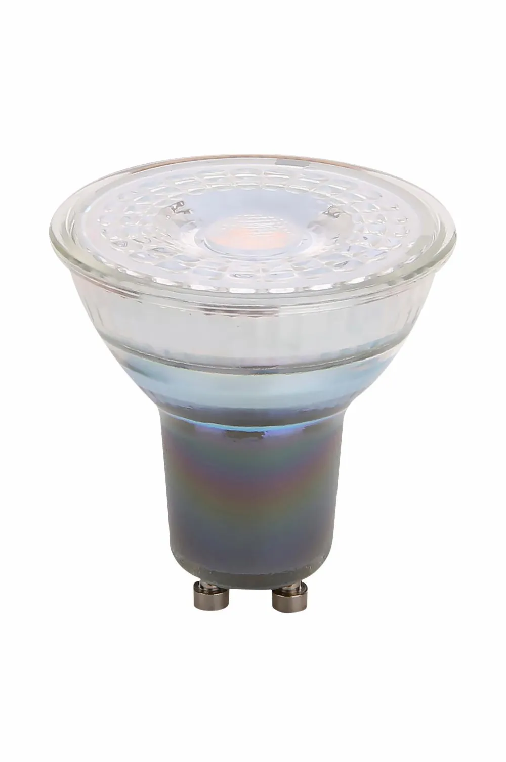 Spotlight LED med GU10 fatning og varmt, hvidt lys. Transparent glas Farvetemperatur på 2700K og spredningsvinklen 38°. Denne spotpære kan dæmpes i farvetemperaturintervallet mellem 2200-3000K. Det giver mulighed for at skabe en tilpasset stemningsbelysning! Højde 5,35 cm og diameter 5 cm. Spænding 230 V.