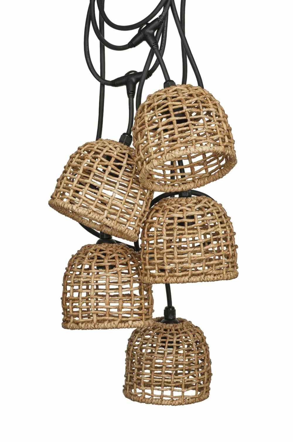 Flex out lyskæde til udendørs brug (ip44) med 5xe27 fatning. I alt: 6,5 m. 2,5 m til første fatning og derefter 80 cm imellem. Med 5 cebu-lampeskærme. Da det er et naturmateriale, er det bedst at bruge det under et tag, i et lukket rum eller indendørs. Hvis den bruges udenfor, vil materialet ændre sig med patina. Skærmen er 17 cm bred og 16 cm høj.