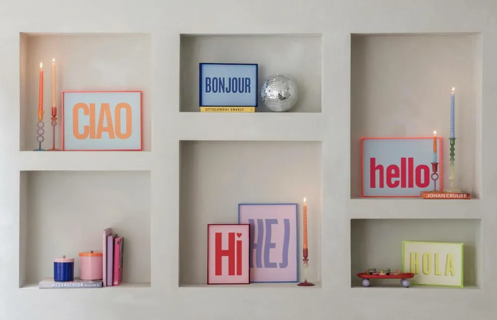 Sig det enkelt, men stilfuldt med denne vægkunst fra nutiden. Den legende typografi og de friske farver giver øjeblikkeligt væggen et muntert udtryk. Lavet af robust og blank akryl for et moderne look.