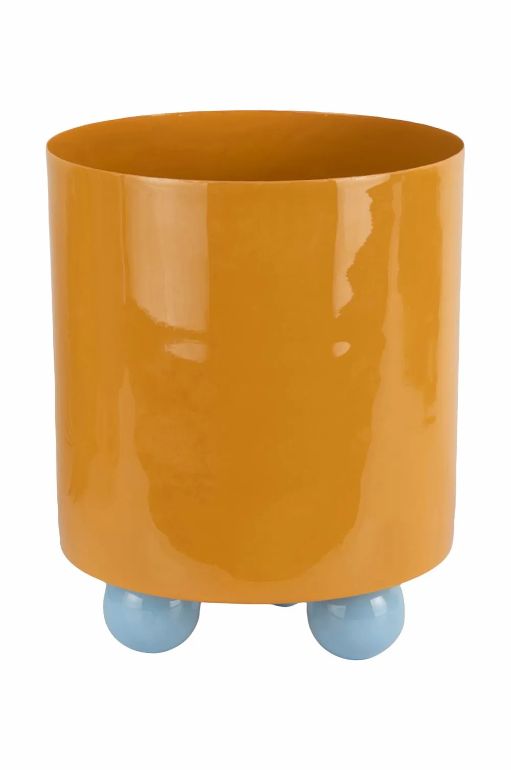 Nutiden double funky lille urtepotte. En markant krukke, der fås i tre forskellige størrelser. Krukken står på kugleformede fødder. I sommerlige, levende farver. Hvert stykke har to kontrastfarver. Et dejligt unikt design.