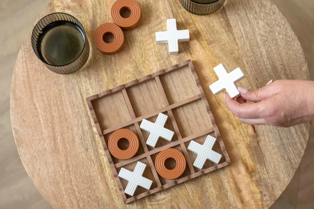 En klassiker i et nyt look! Present time’s tic tac toe er ikke kun sjov at lege med, men også en stilfuld tilføjelse til dit interiør. Træbasen og de legesyge x- og o-blokke i bløde toner gør den til et ægte blikfang på bordet eller i skabet. Fås i tre farvekombinationer.