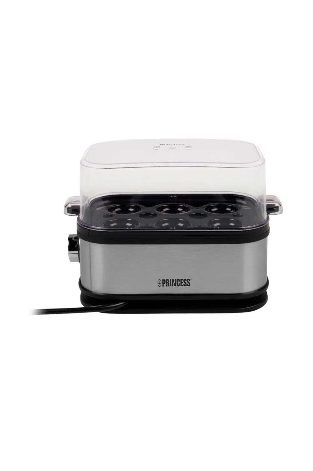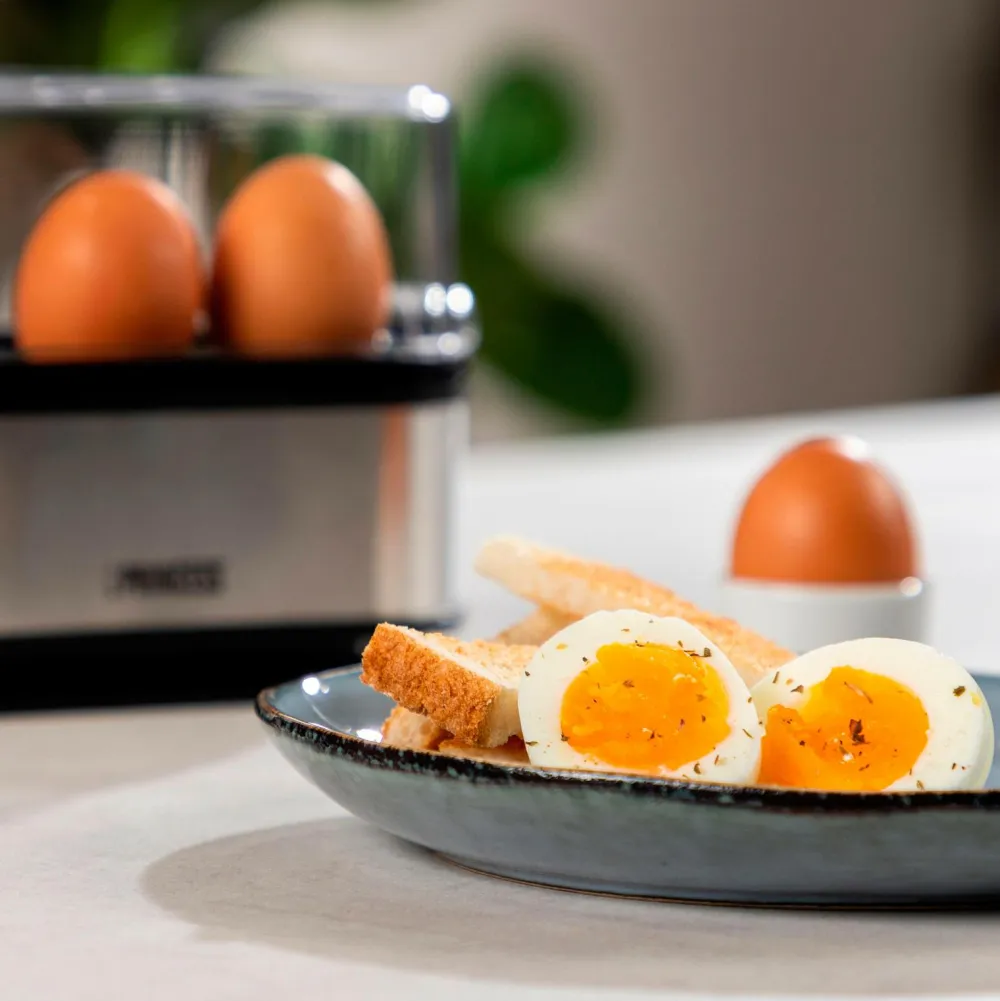 En flot og praktisk æggekoger i rustfrit stål med plastlåg. Koger op til 6 æg samtidigt. Med målebægeret afmåler du mængden af vand til hårdkogte, smilende eller blødkogte æg.