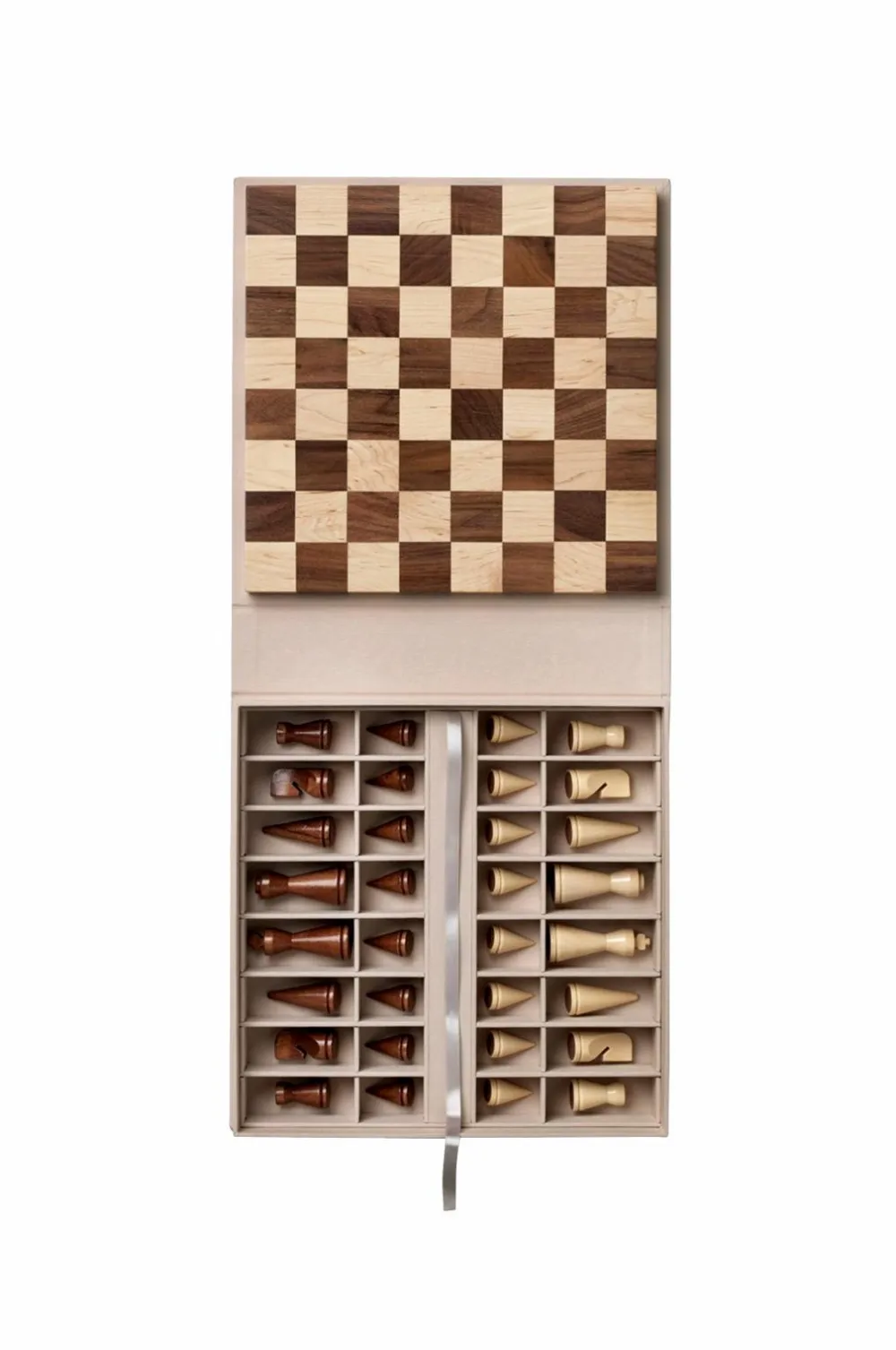 Minimalistisk skak er en raffineret version af det klassiske spil, designet til dem, der sætter pris på diskret elegance. Træbrættet har et tidløst, forfinet look og leveres i en beige, boglignende æske, der passer perfekt ind i din sofabordindretning. Et funktionelt design, der er lige så smukt at se på som at spille med.