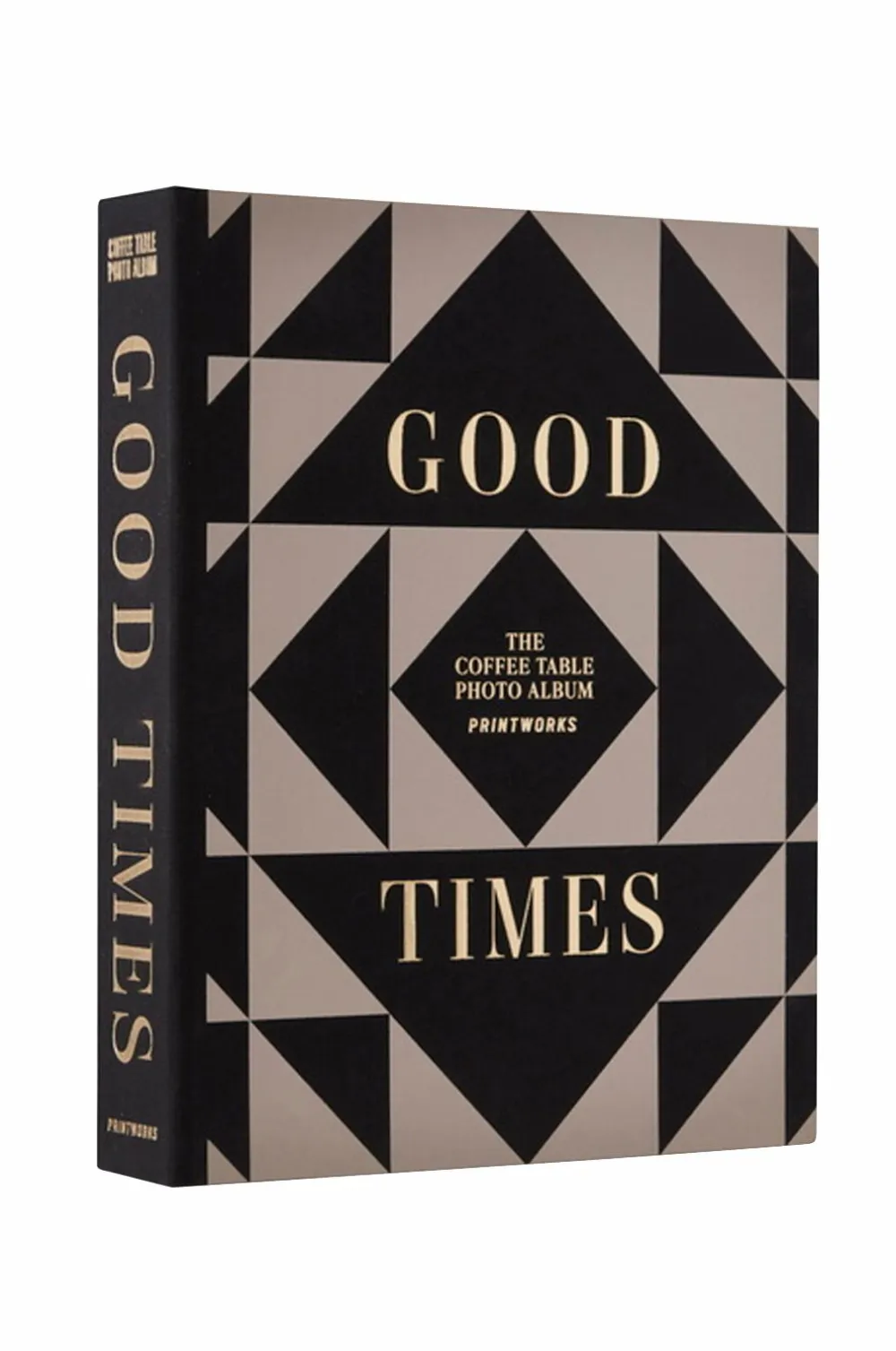 Oplev vores good times – triangles fotoalbum med et elegant beige og sort stofomslag med guldfolieret tekst. Indeni finder du 30 sider med sort fotopapir af høj kvalitet, så du nemt kan sætte dine fotos fast med vores klistermærker eller fotohjørner, som købes separat. Der er plads til to fotografier på 10×15 cm på hver side og plads til personlige noter nedenunder. Hvis du har brug for flere sider, kan du bestille ekstra fotopapir (large). Bemærk, at albummet maksimalt kan rumme 40 sider.