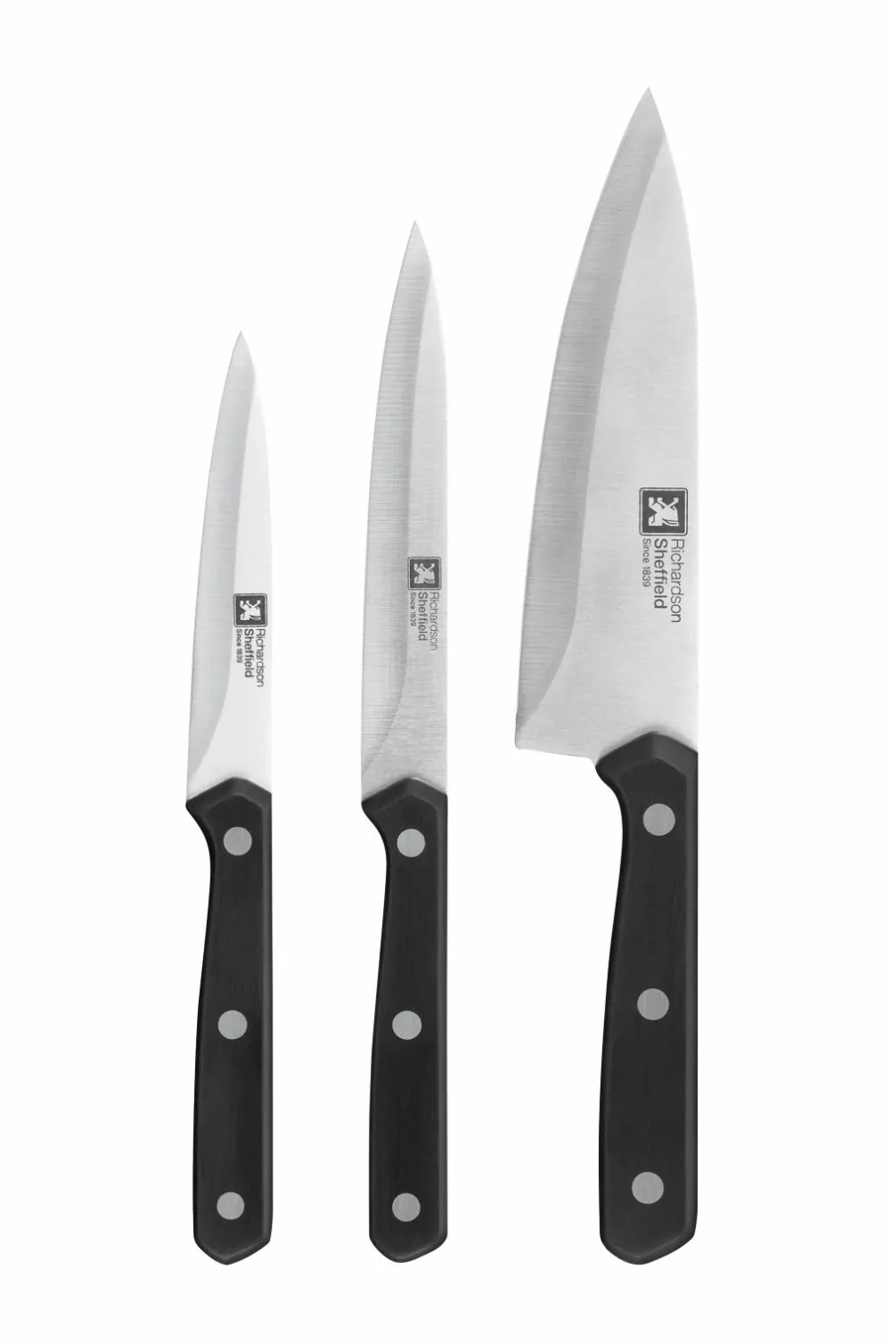 Optimer din madlavning op med disse populære knive fra Richardsson Sheffield. Knivene er lavet af rustfrit stål og har et nittet skaft, der ligger behageligt i hånden.