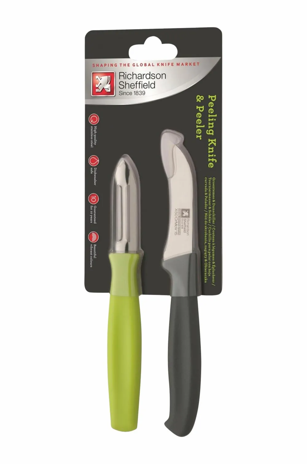 Populært urtesæt fra velkendte Richardsson Sheffield. Sættet indeholder en skræller og en urtekniv. Begge er lavet af rustfrit stål og har plastikhåndtag, hvilket gør at de tåler opvaskemaskine.
