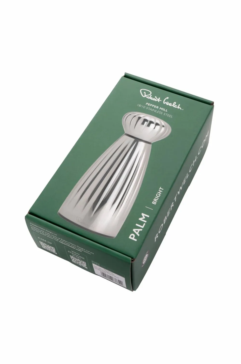 Elegant, riflet palm bright peberkværn (medium) i højglanspoleret finish, der supplerer palm bestikserien. Det karakteristiske riflede design på palm bright peberkværn er fremstillet af det fineste 18/10 rustfrit stål og har en spejlpoleret finish, der reflekterer lyset. Kværnen ligger godt i hånden og har en keramisk mekanisme fra crushgrind®, som nemt kan justeres fra fin til grov, er nem at fylde op fra toppen og har en betryggende livstidsgaranti.