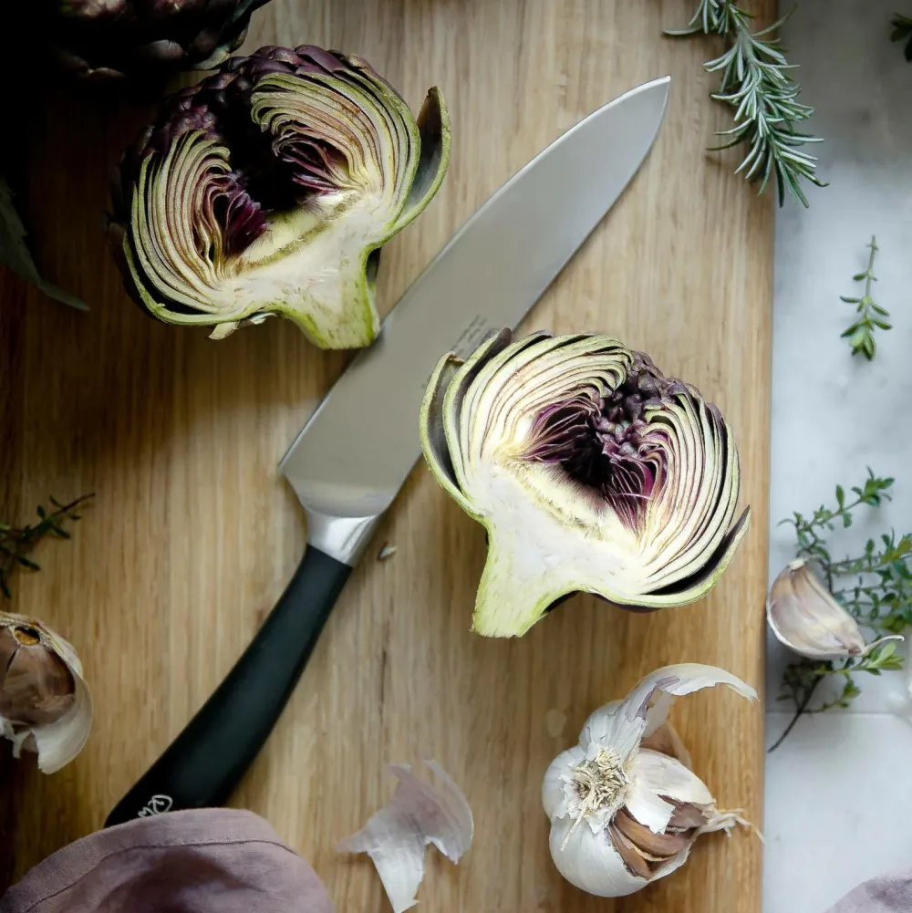 At vælge den rigtige køkkenkniv, den bedste kniv til den aktuelle opgave, gør det lettere at tilberede et måltid. Når du vælger den perfekte kniv til at snitte, skære i tern eller hakke med, kan du arbejde præcist og skære ensartet, hvilket hjælper maden med at blive tilberedt mere jævnt. Det specialhærdede tyske rustfrie stål af høj kvalitet, der bruges til vores signature knive, er holdbart, nemt at rengøre og vedligeholde.