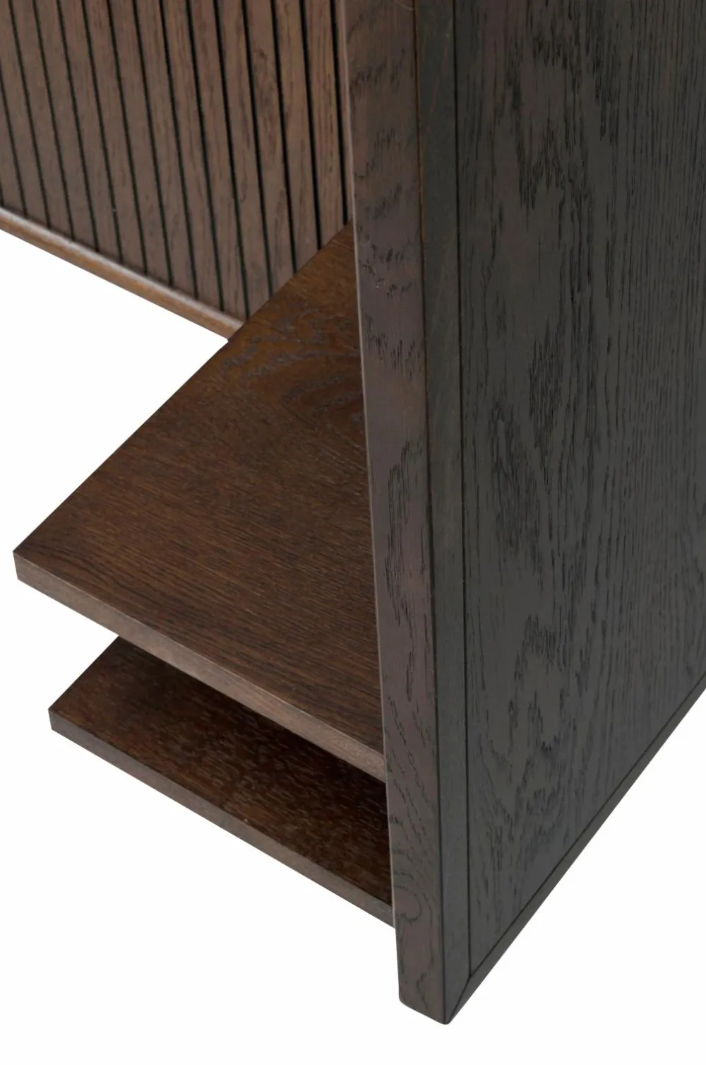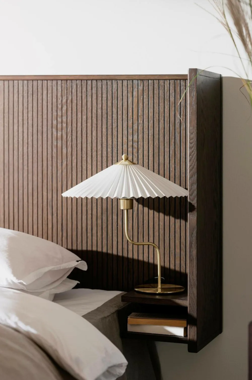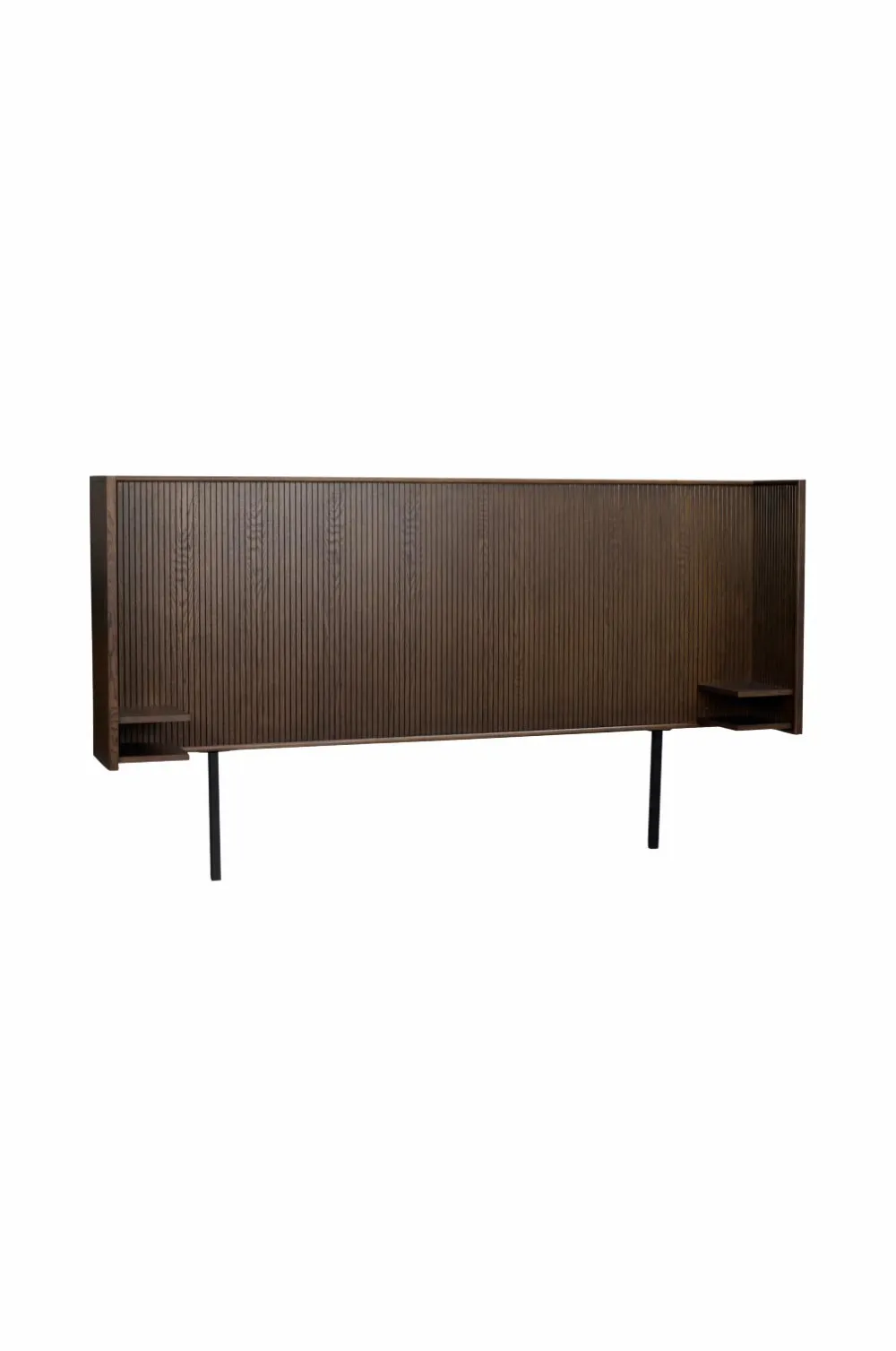 Redmond sengegavl er både elegant og eksklusiv, hvilket giver dig en skøn hotelstemning i dit soveværelse. Kombinér sengegavlen med pendler over de integrerede sengeborde og indretningsdetaljer i messing for et ekstra luksuriøst indtryk. Sengegavlen har et dekorativt ribmønster i fin brun nuance. Redmond sengegavl passer perfekt til senge som er 180 cm brede. Takket være de justerbare metalben kan du selv vælge højden på sengegavlen, fra 120 til 145 cm. Beslag til at fastgøre sengegavlen i væggen medfølger.