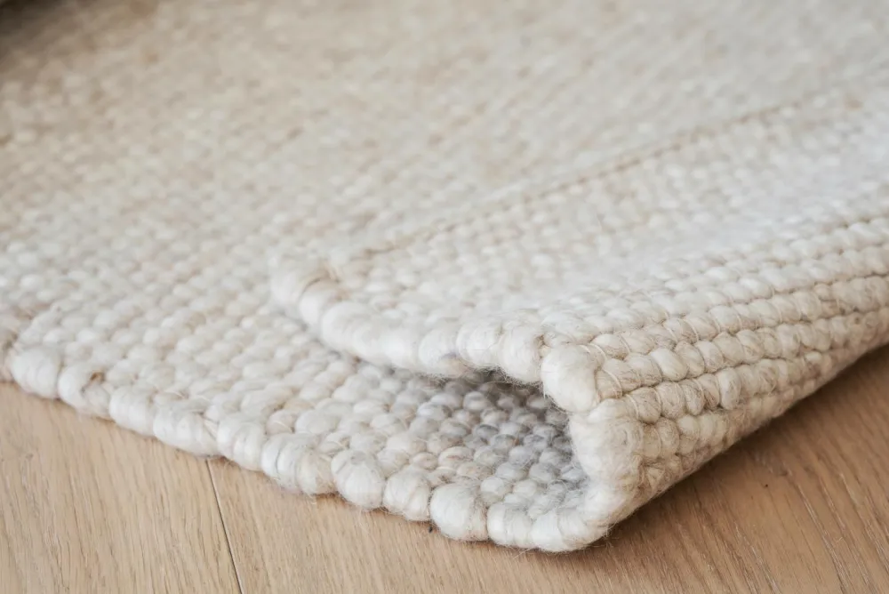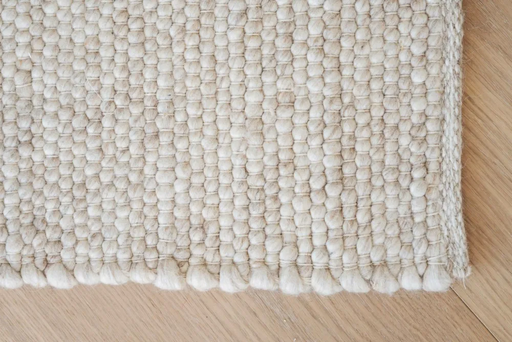 Auckland-tæppet 240×340 cm i beige uld er et slidstærkt, håndvævet tæppe af høj kvalitet. Det er lavet af 100 % uld og er varmt og behageligt at gå på. Auckland fås i flere størrelser og er takket være sine naturlige farver let at placere i forskellige rum i dit hjem. Det anbefales at bruge et tæppeunderlag. Fås også i natur og grå.