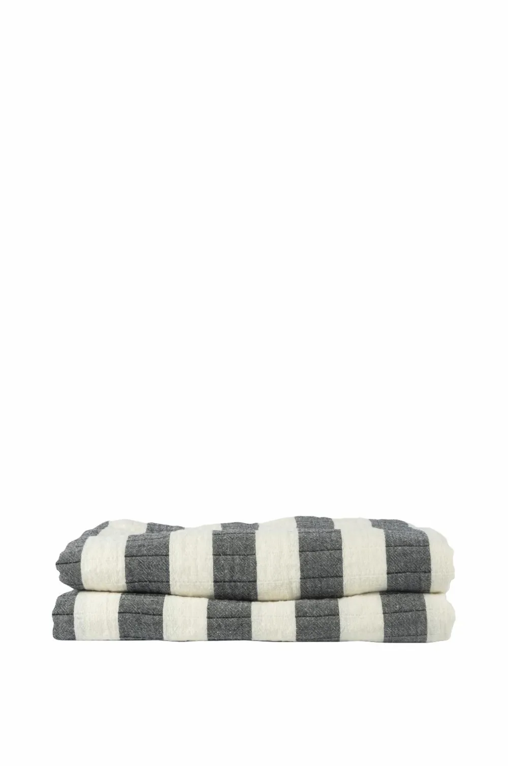 Et tæppe, der er både hyggeligt, blødt og køligt. Med et klassisk stribet mønster tilfører det et strejf af tidløs stil til ethvert hjem. Fremstillet af 70 % genbrugsbomuld og 30 % genbrugspolyester. Dimensioner: 130×170 cm. Fås i to farver. Leveres i en klassisk gaveæske.