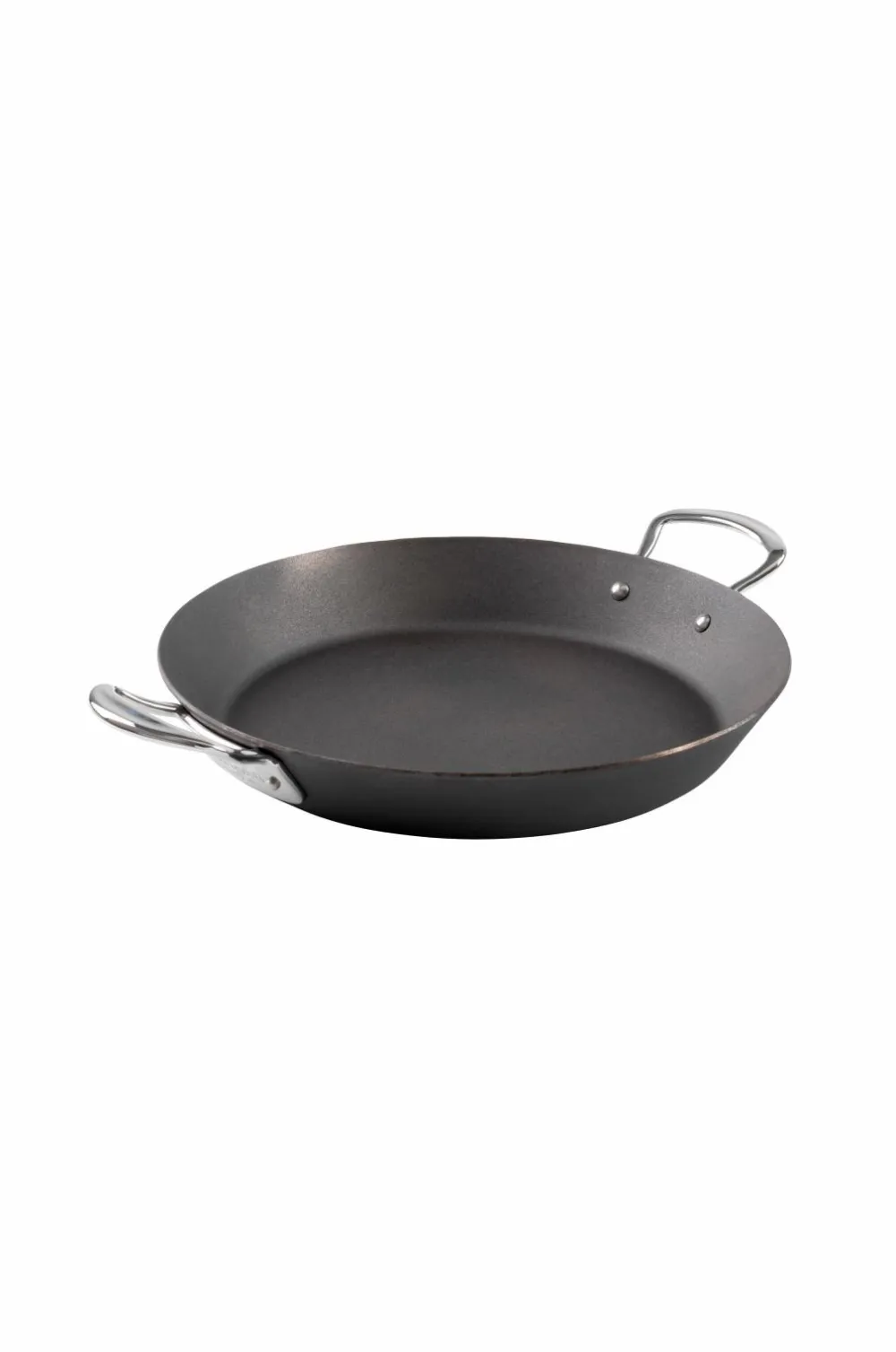 Paellapande fra Samuel Grove’s Carbon Steel-serie, 30 cm. En paellapande i holdbart kulstofstål, som kan beskrives som en krydsning mellem en rustfri stålpande og en belagt pande. Panden er et must, når du laver paella eller andre retter, der kræver plads og en stor stegefacade. Den er også fremragende til servering. Brug en opvaskebørste og varmt vand til rengøring, og tør panden af med køkkenrulle.