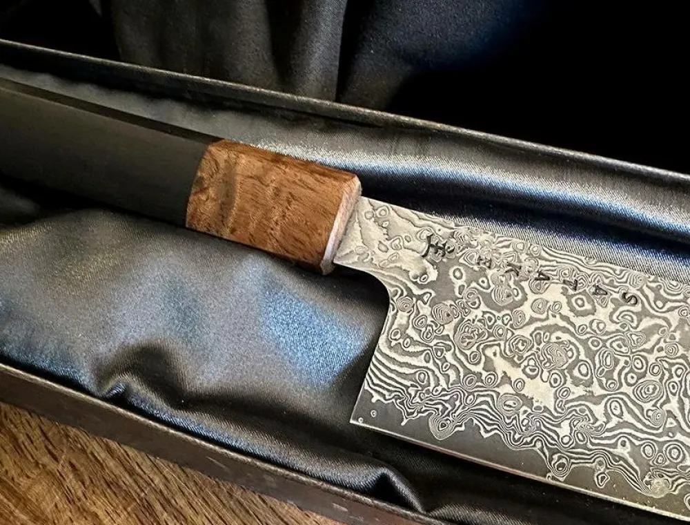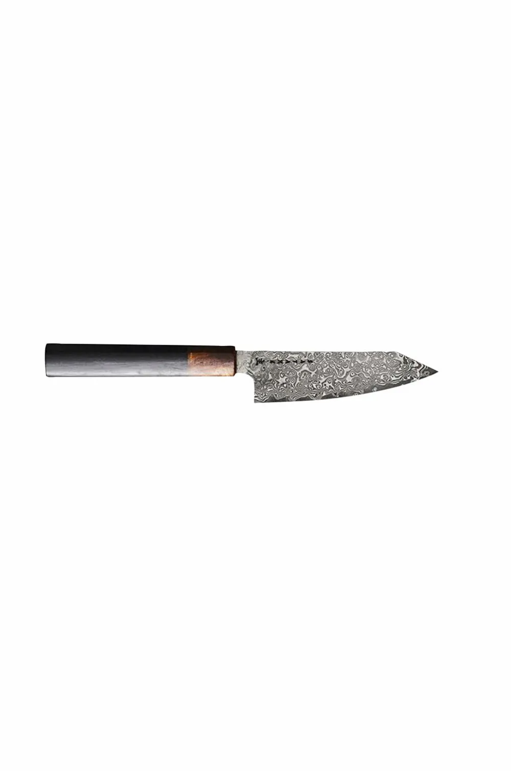 Satake omo – tradition & håndværk satake omo petty ペティナイフ omo petty er en meget delikat og elegant urtekniv med en bladlængde på 12 cm. Det blødt polerede damaskusblad er stærkt og tyndt, hvilket giver en meget eksklusiv fornemmelse, når det bruges. den særlige bladform med en skrå front er en hybrid, hvor klassisk petty møder den karakteristiske form på en bunka. petty / skrællekniven er en perfekt model til det mindre arbejde, de mindre råvarer, hvor nøjagtighed er af stor betydning. Skræl løg, kartofler, skær frugt og grønt eller detaljer arbejdet med f.eks. fisk. bladet bladene i omo serien fra satake har et utroligt smukt damaskusblad med 67 lag aus-10 stål. Dette stål fremstilles af aichi steel corporation i Japan. Det er optimalt i køkkenknive af høj kvalitet på grund af dets afbalancerede egenskaber. aus-10 har en rockwell-hårdhed (hrc) på omkring 58-60, hvilket gør det hårdt nok til at holde en skarp kant, men blødt nok til at være relativt let at slibe. Stålet har …