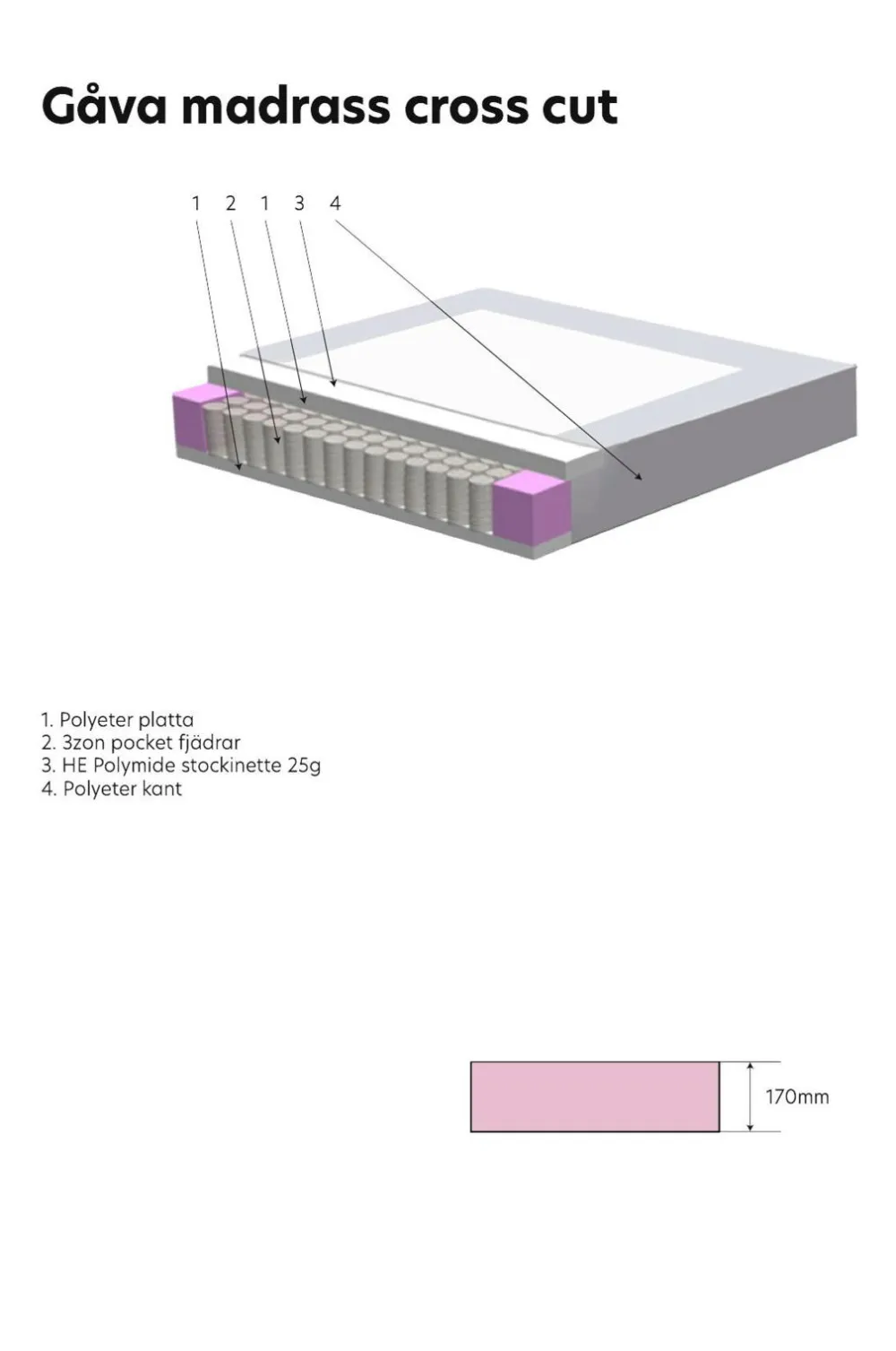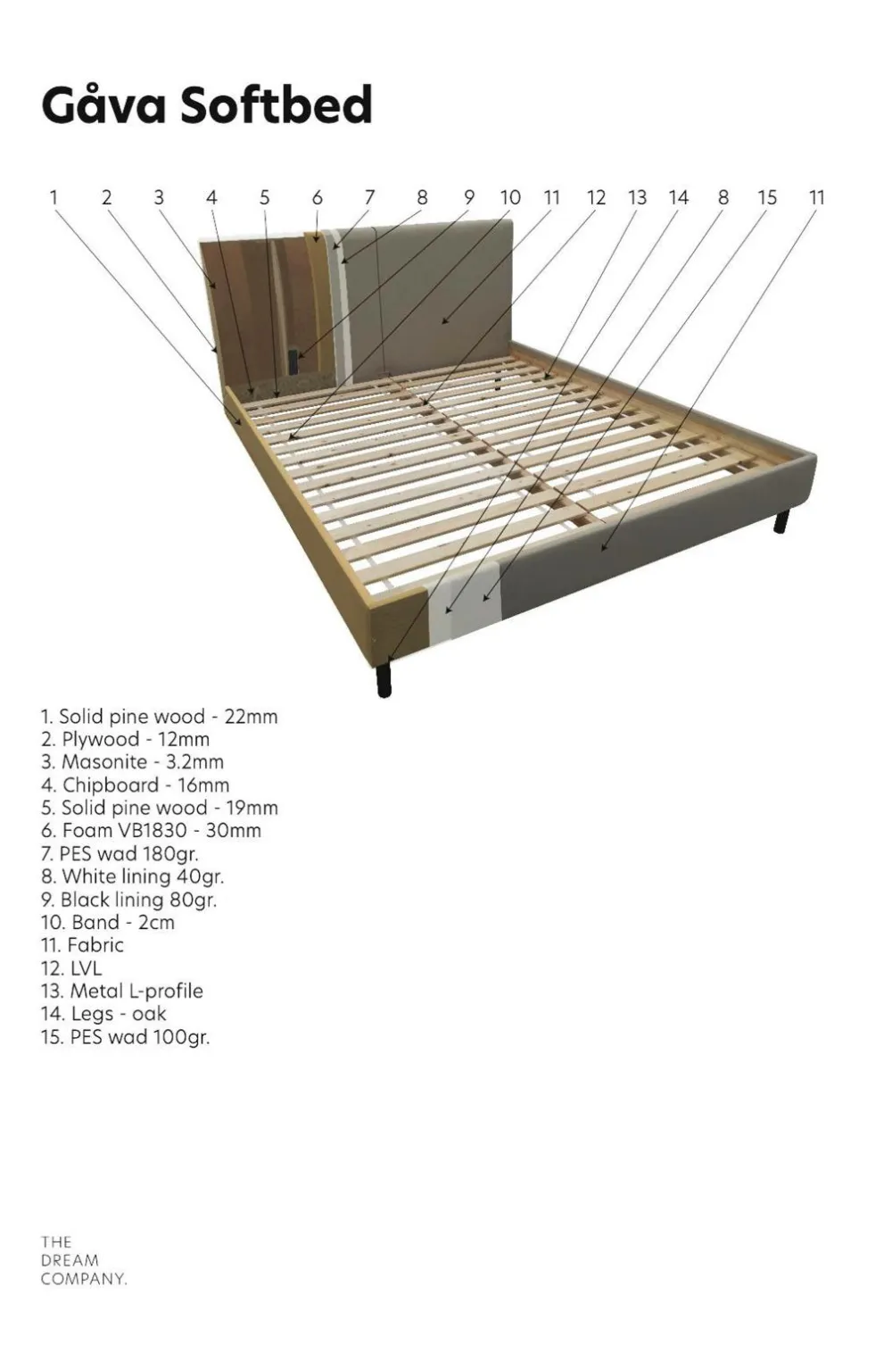 GÅVA, sengen designet til et helt liv – konstruktionen giver en bred vifte af muligheder for at ændre komfort og stil. En Softbed er en seng med indbygget hovedgærde, hvor du kan vælge din komfort. Alt sammen for at passe til din livsstil. At kunne opgradere, renovere og reparere din seng er en vigtig bæredygtig forpligtelse, da det forlænger din sengs levetid. Designet giver dig også mulighed for at genbruge din seng. Vi tilbyder 25 års garanti på fjederbrud. Sengen består af en ramme lavet af gran, der er dækket af et blødt stof af 100 % polyester. Kassetterne er en 17 cm høj 3-zonet lomme. Du får ekstra støtte i midten, hvor kroppen er tungest, samtidig med at skuldre og nakke aflastes. Benene er af metal i et elegant design, 19 cm. Topmadras, picérad med en kerne af hyperblødt skum, omviklet med 4-kanals hulfibervattering, der leder fugt og varme væk. Madrassen er piqué, hvilket betyder, at betrækket ikke kan fjernes, men det skaber en overfladeblød følelse.