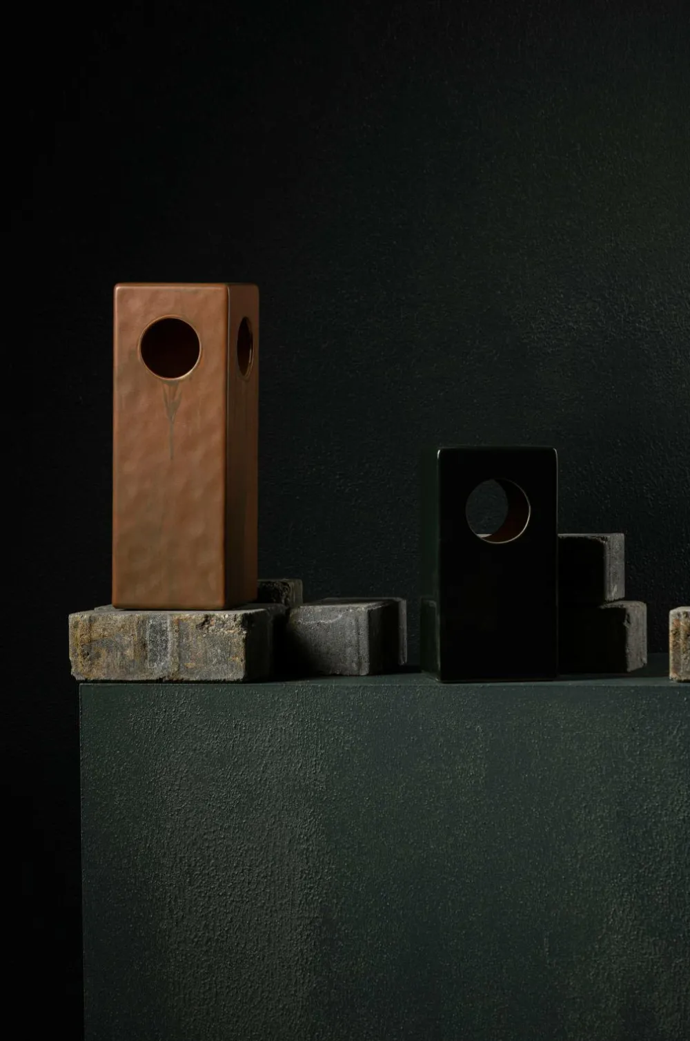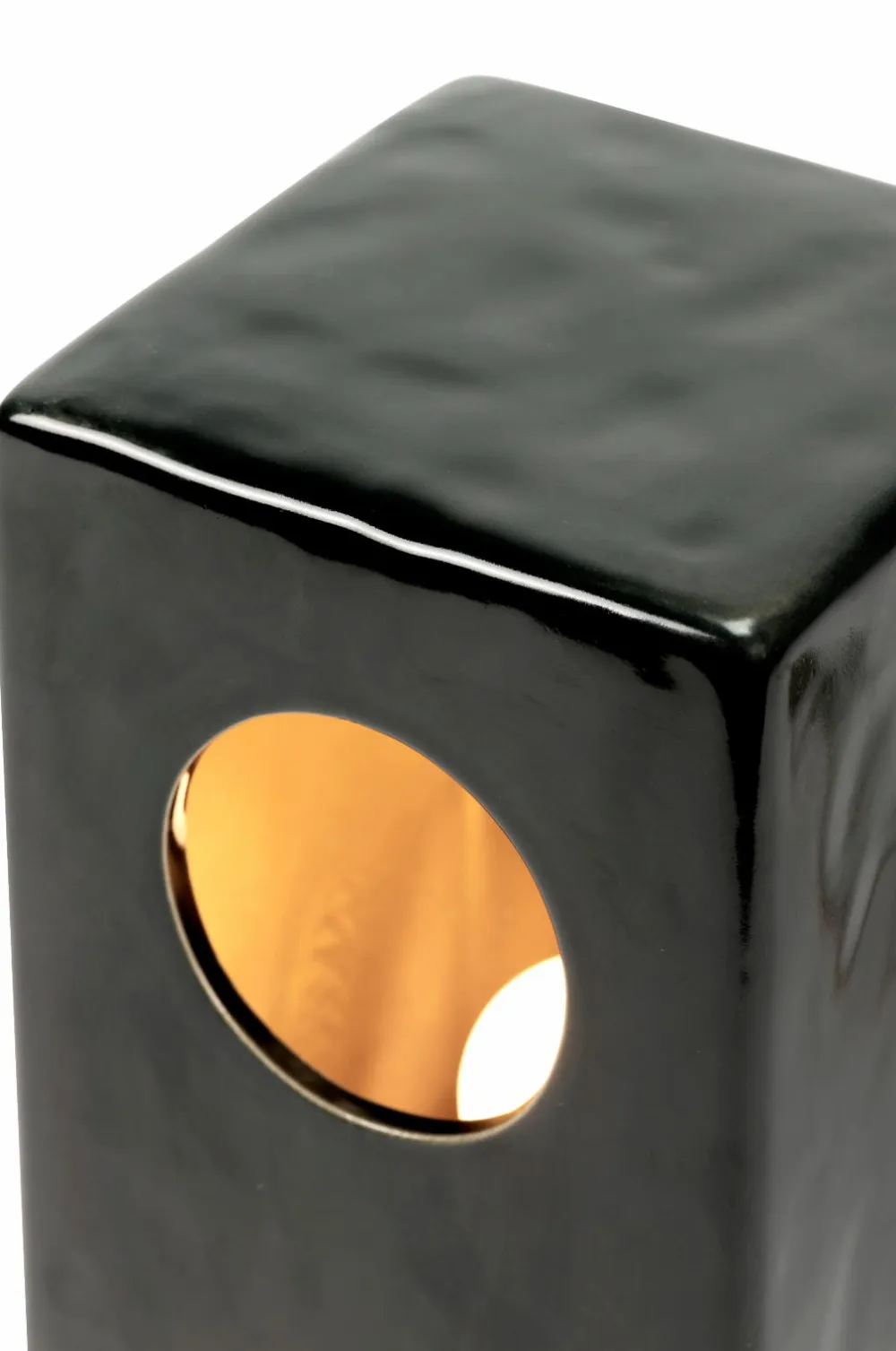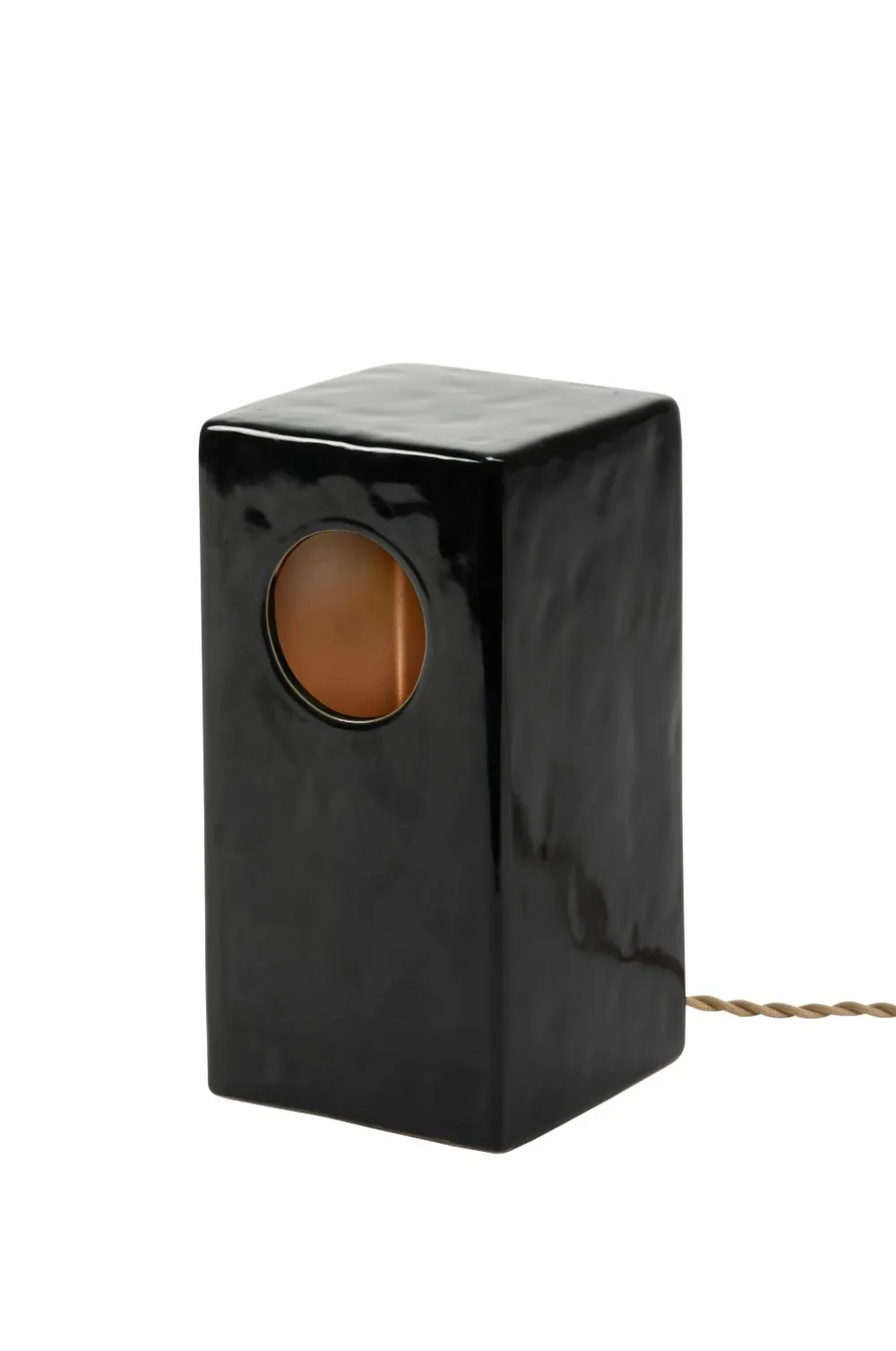 Atmosfærelampen maxime med sit geometriske design i sten findes i to versioner, der danner en fascinerende arkitektonisk komposition. Det malede indre skaber et varmt lys. Fordi lampen er placeret i bunden af basen, bliver cirklen smukt oplyst. Komplet med stofledning og afbryder tilføjer maxime en elegant glød til ethvert rum.