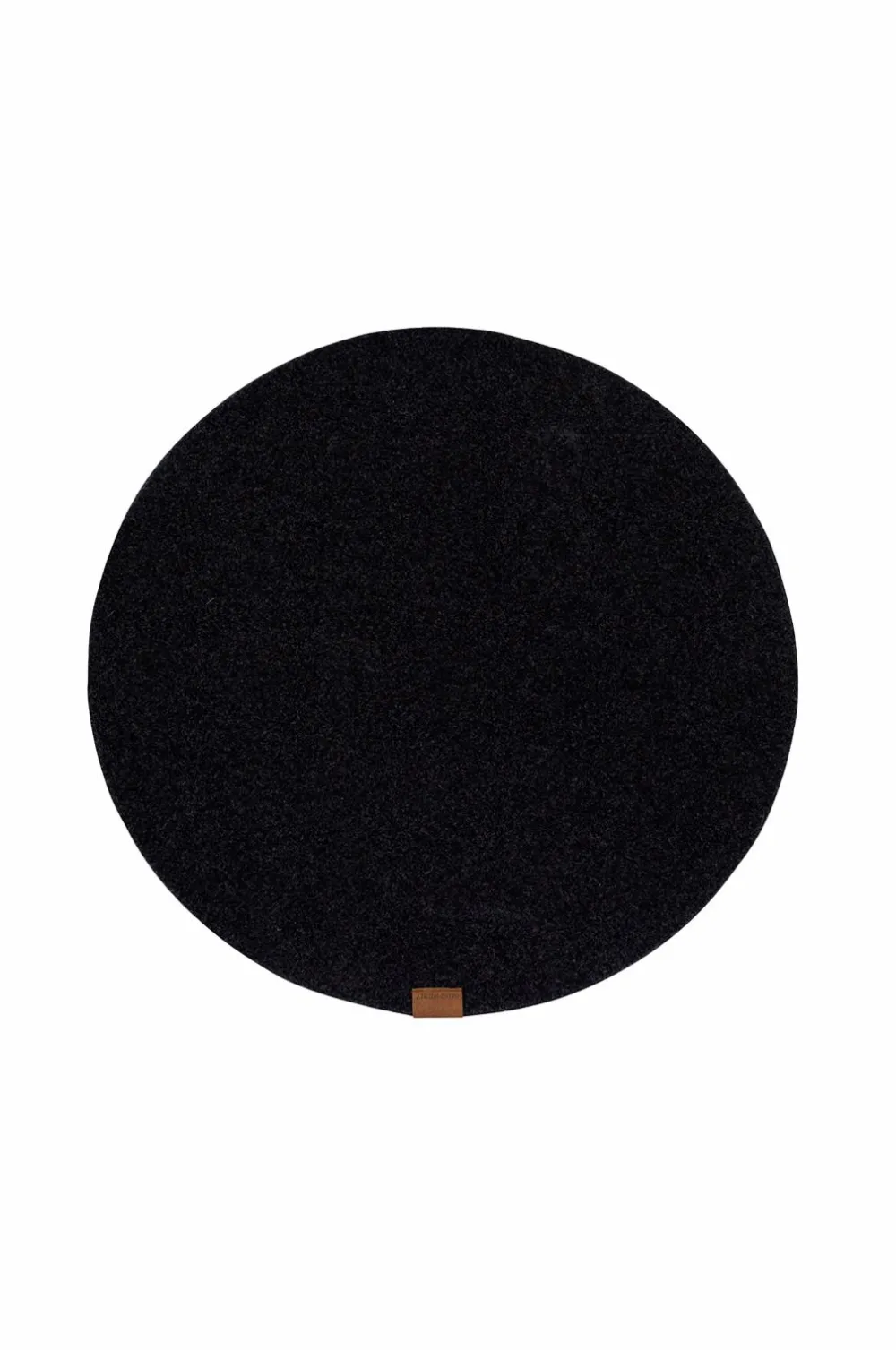 En rund dækkeserviet lavet af filtet uld. Kan endda bruges til at støtte varme gryder og pander. Dekorativ detalje af imiteret læder. 60 cm ø