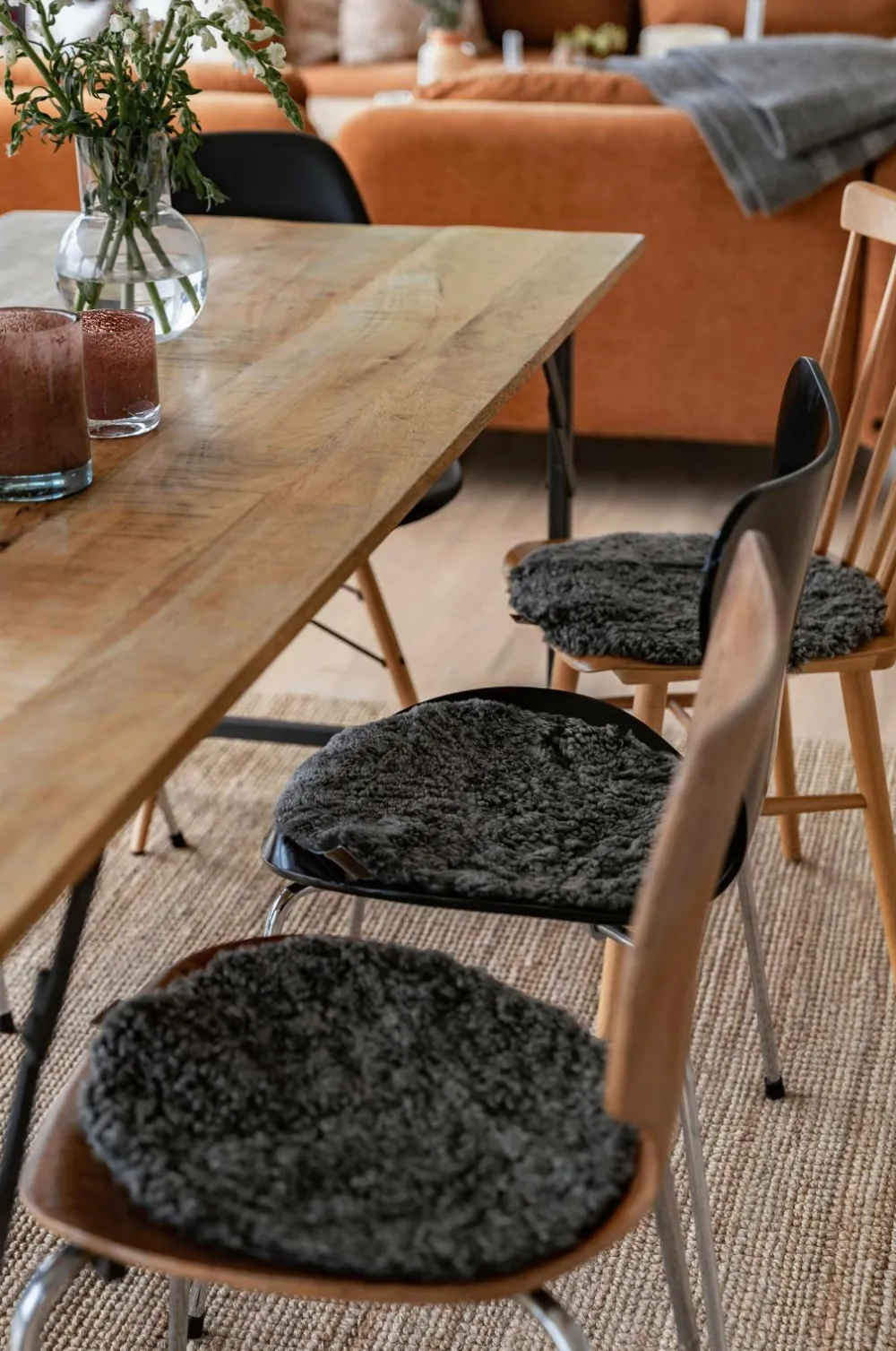 Ida fra Shepherd. En uvatteret stolehynde i blødt korthåret fåreskind fra Australien. Alle fåreskind er naturlige og kan derfor variere i struktur. Underside i ufarvet læder.
