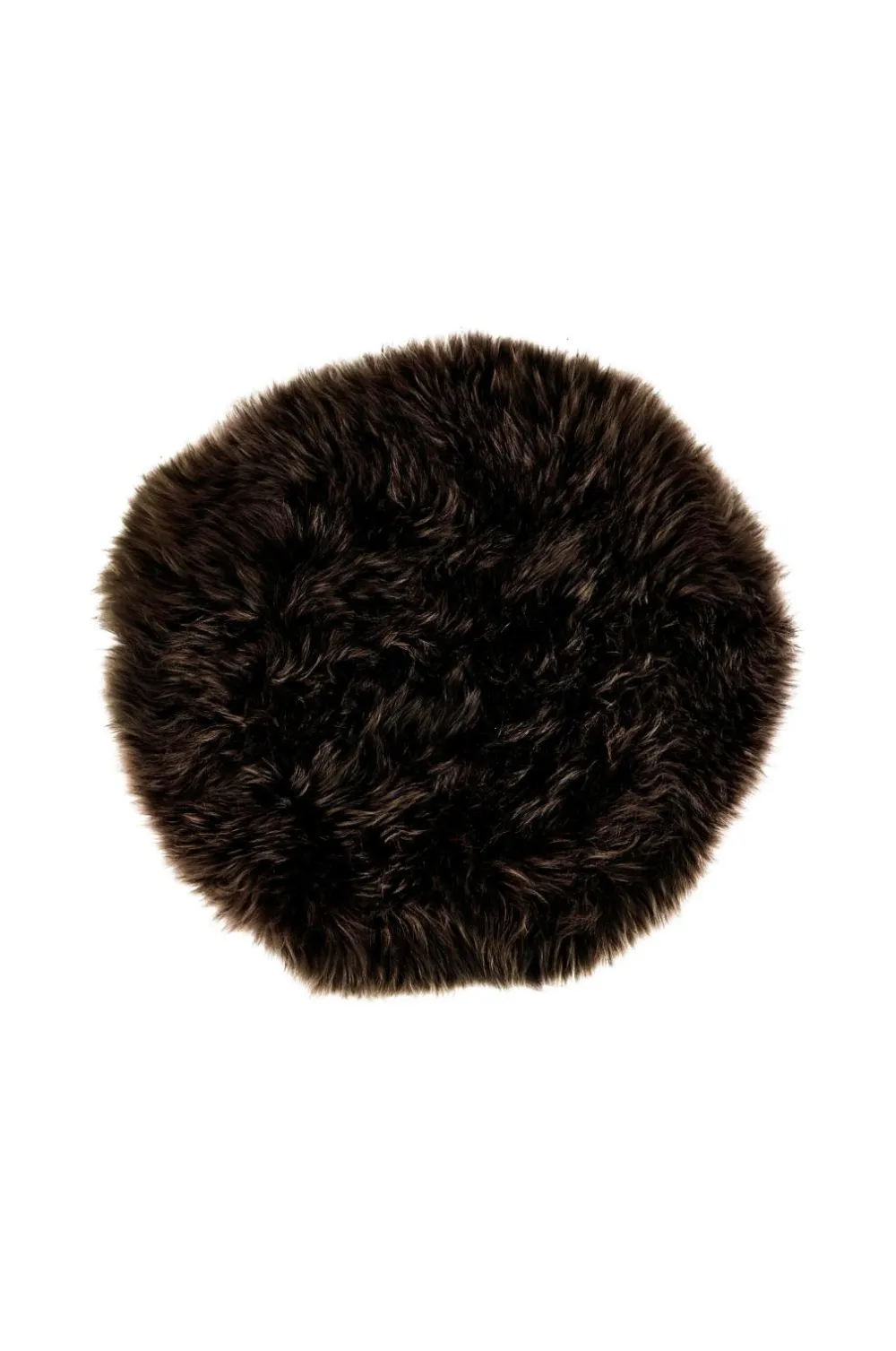 Shepherd molly. En blød stolehynde lavet af langhåret fåreskind. Alle fåreskind er naturlige og kan derfor variere ud fra deres naturlige struktur. Underside i ufarvet læder. 36 cm ø