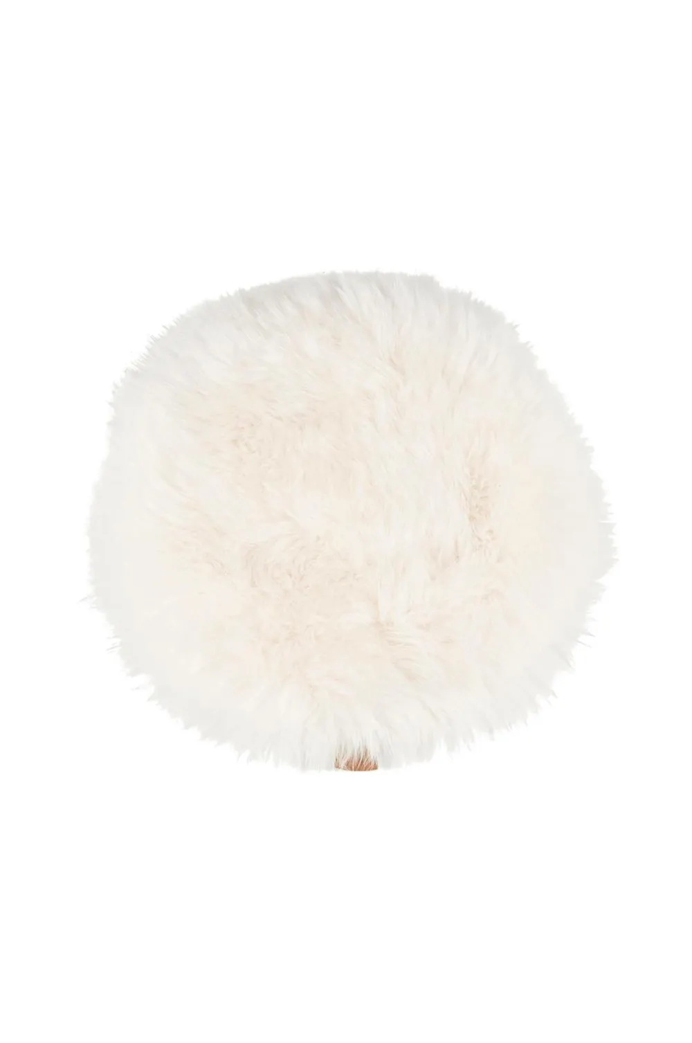 Shepherd molly. En blød stolehynde lavet af langhåret fåreskind. Alle fåreskind er naturlige og kan derfor variere ud fra deres naturlige struktur. Underside i ufarvet læder. 36 cm ø