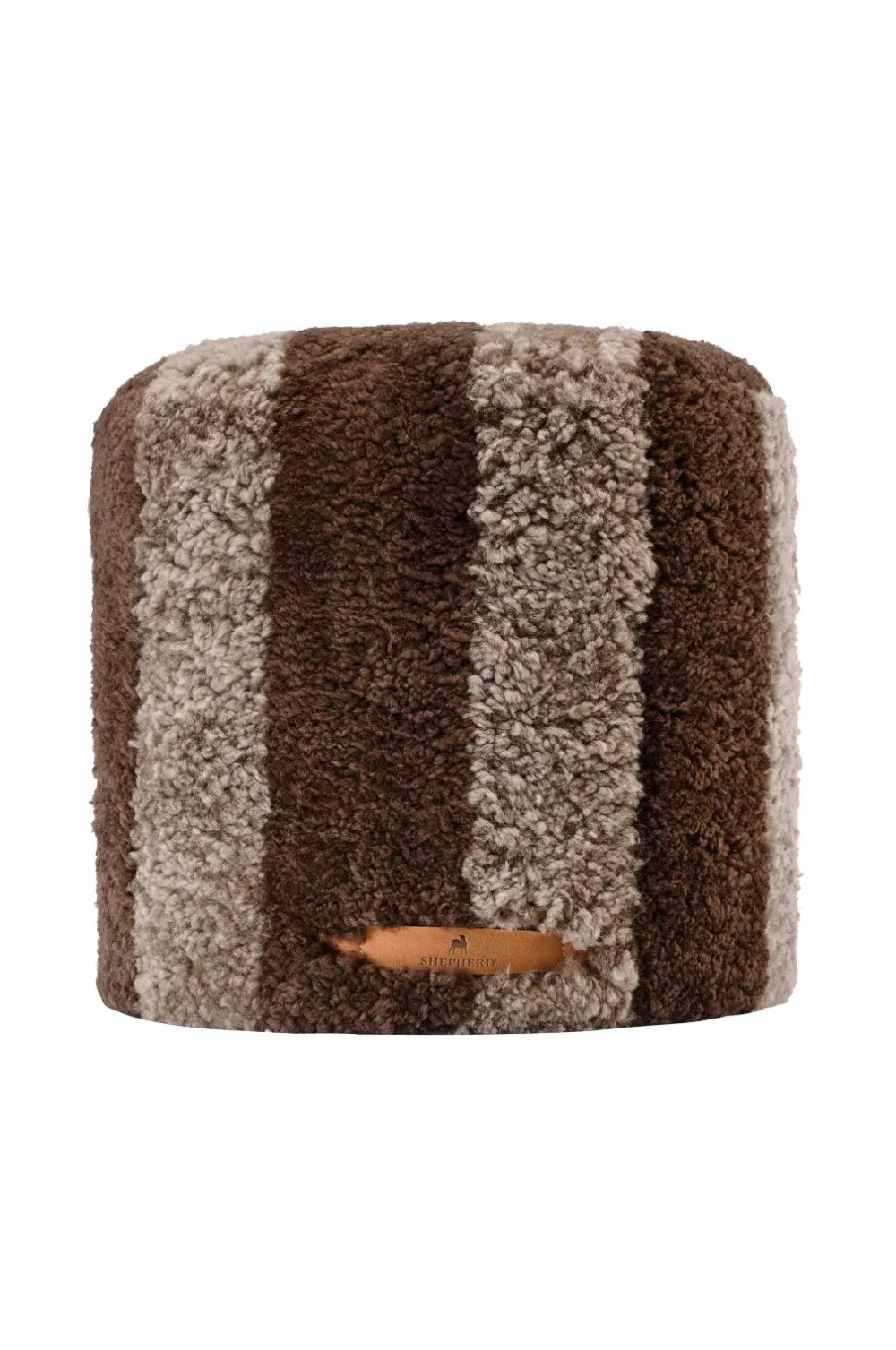 Shepherd randy er en rund puf med et stribet mønster lavet af ægte fåreskind fra Australien. Dens rene, stilfulde design gør den perfekt både som ekstra siddeplads og som et blødt dekorativt element.