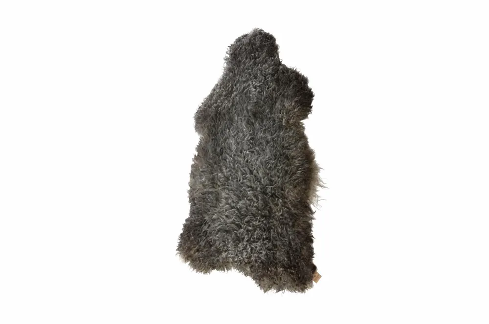 Sanda – langhåret svensk fåreskind fra Gotland. Naturlig farve i grålagtige toner. Hvert skind er unikt i farve og struktur. Skindene er ca. 100×60 cm.