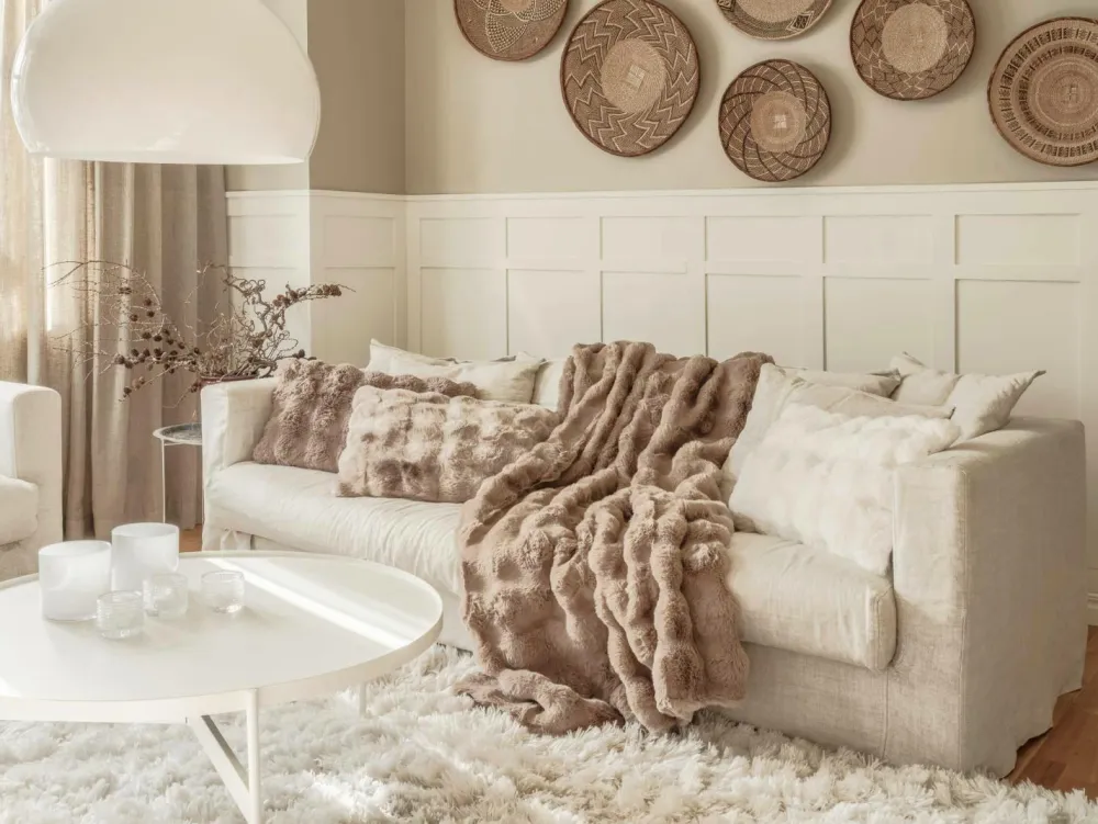 Fineste Misty er lavet af den blødeste kunstpels. Stilfuld meleret farve for et luksuriøst look, der passer perfekt ind i både soveværelse og stue. Indret dit hjem med sjæl og stil. Der findes matchende puder. Maskinvask 30°. Materiale: 100% polyester.