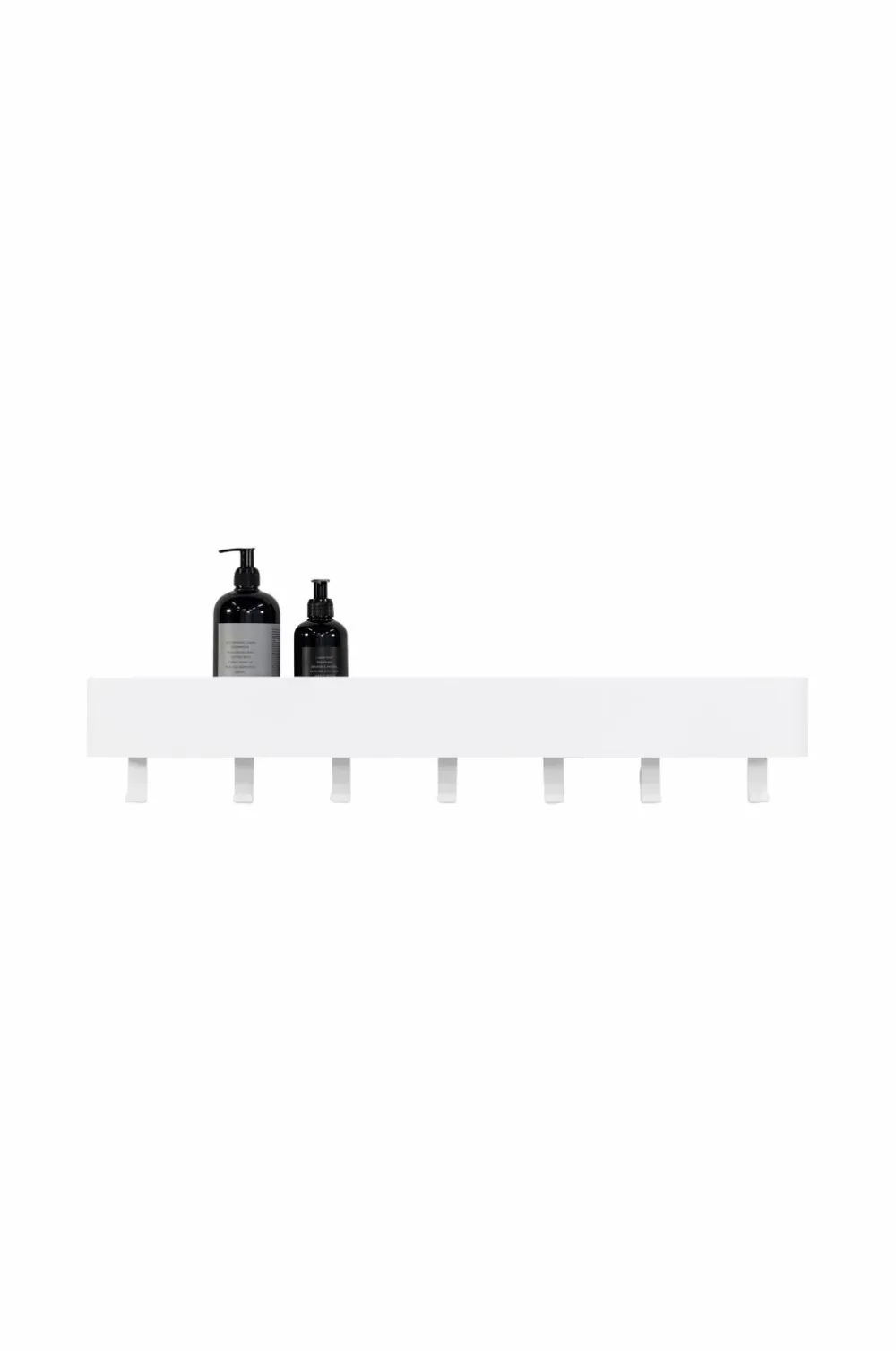 Multi 7 er usædvanligt alsidig! Det skyldes, at den både er en væghylde og en knagerække i ét praktisk design. Den er en perfekt tilføjelse til din entré, dit køkken eller dit badeværelse. Læg nøgler, køkken- eller badeværelsesredskaber på den øverste hylde, og hæng tøj, redskaber eller håndklæder på de tilgængelige kroge. Multi fås med 3, 5 eller 7 kroge og i forskellige farver.