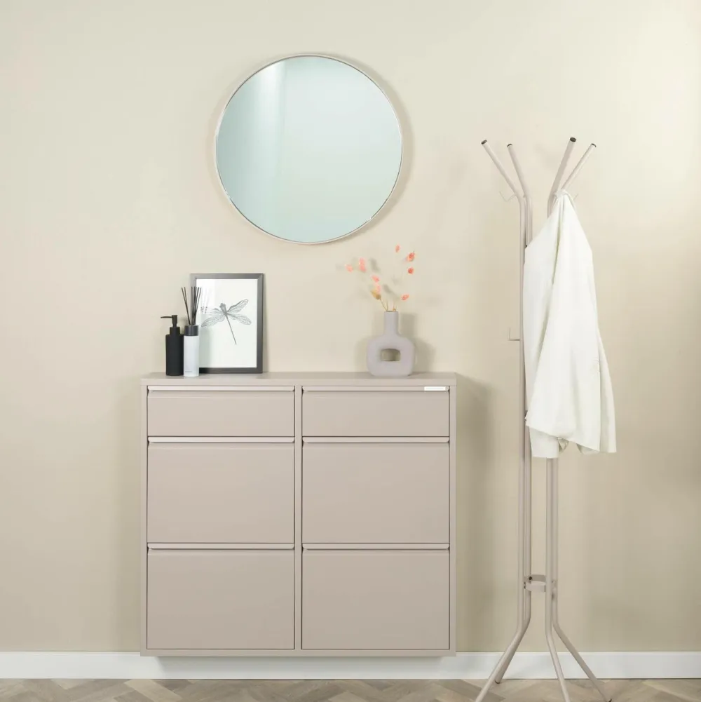 Med et slankt, lavt design i pulverlakeret stål er Billy 6 skoskabet et stilfuldt svar på et almindeligt problem: sko, der ligger og flyder. Et multifunktionelt skoskab, der fås i flere størrelser, og som er et praktisk blikfang både på gulvet og på væggen. Billy 6 har plads til ca. 12 par sko. De øverste rum kan fyldes med handsker eller andet tilbehør, ideelt! Vores tip: Hæng flere Billy’er ved siden af eller over hinanden for at få en legende effekt.