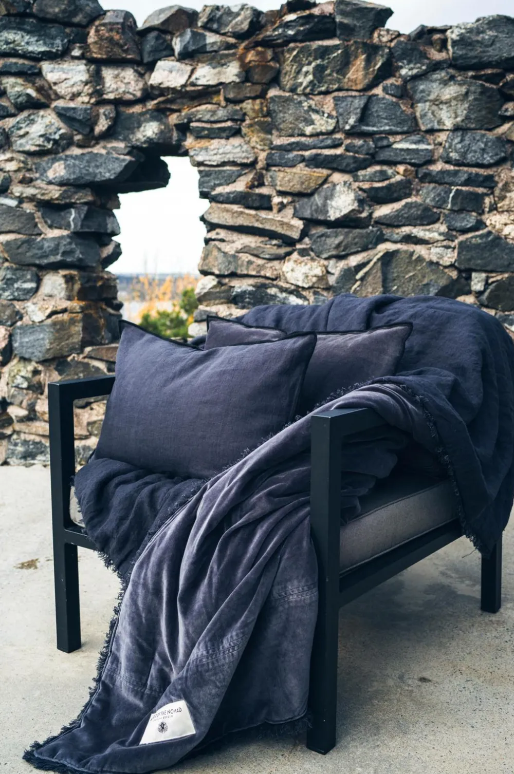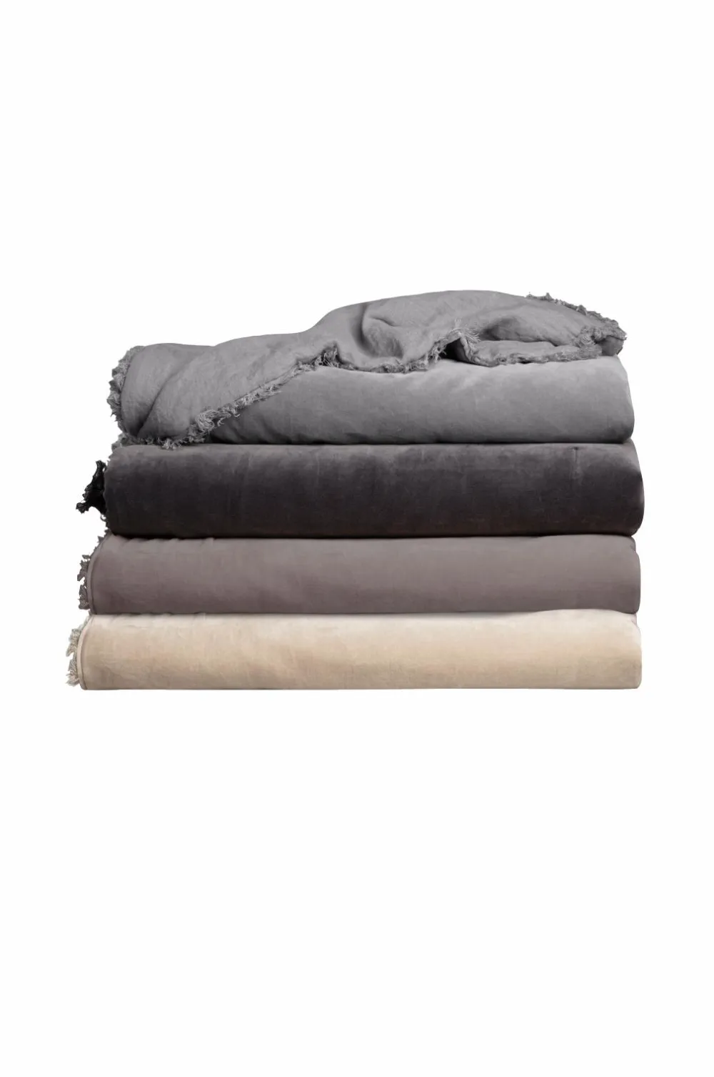 Sengetæpper er en vigtig detalje i indretningen. Vi har designet vores sengetæpper med luksuriøst fløjl på den ene side og naturligt vasket linned på den anden, så du nemt kan ændre udseendet på dit soveværelse. Med andre ord, to alternativer til det humør, du vågner op med. Eller hvilken som helst årstid. Flossede kanter giver et afslappet og naturligt look.