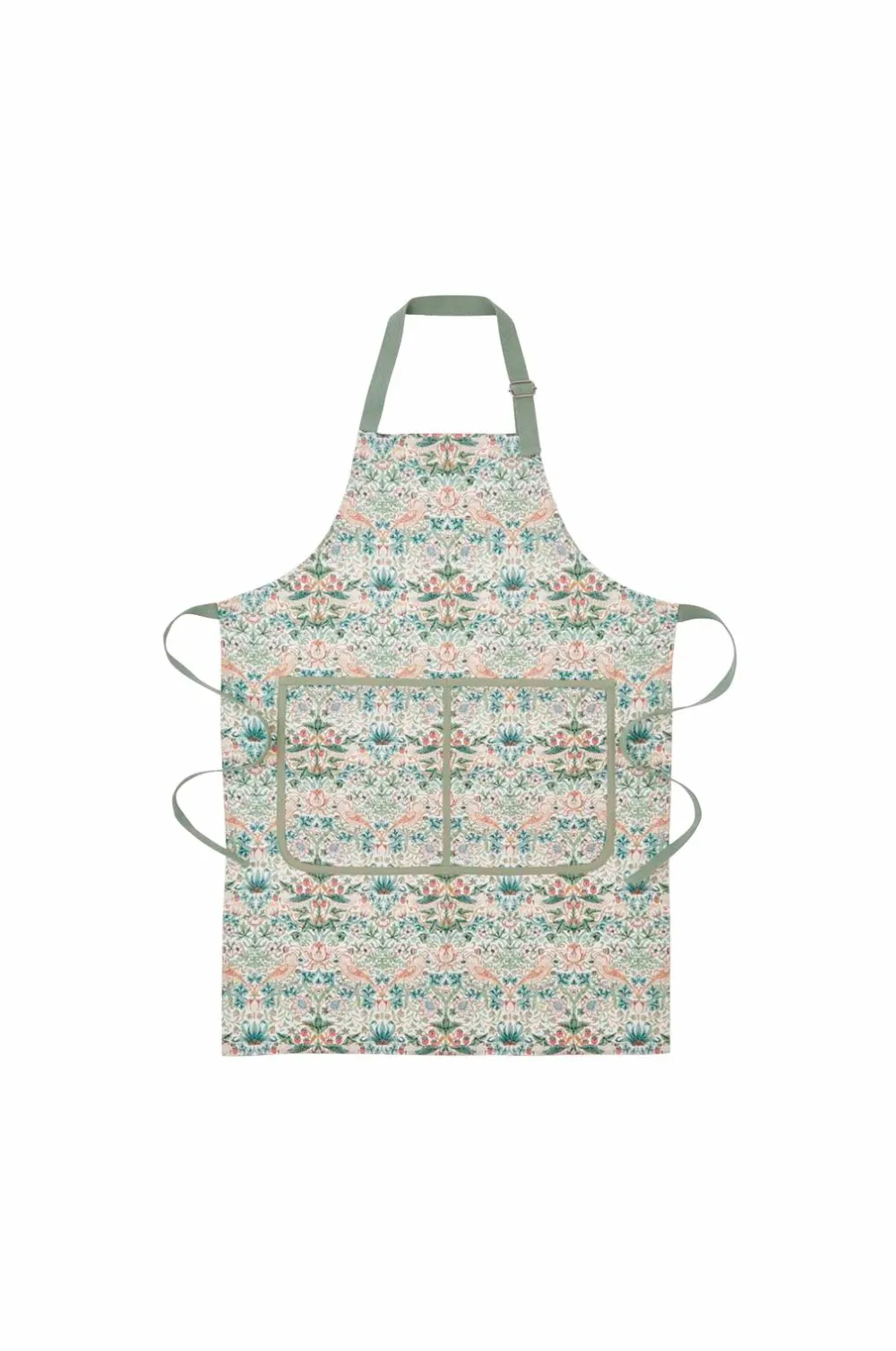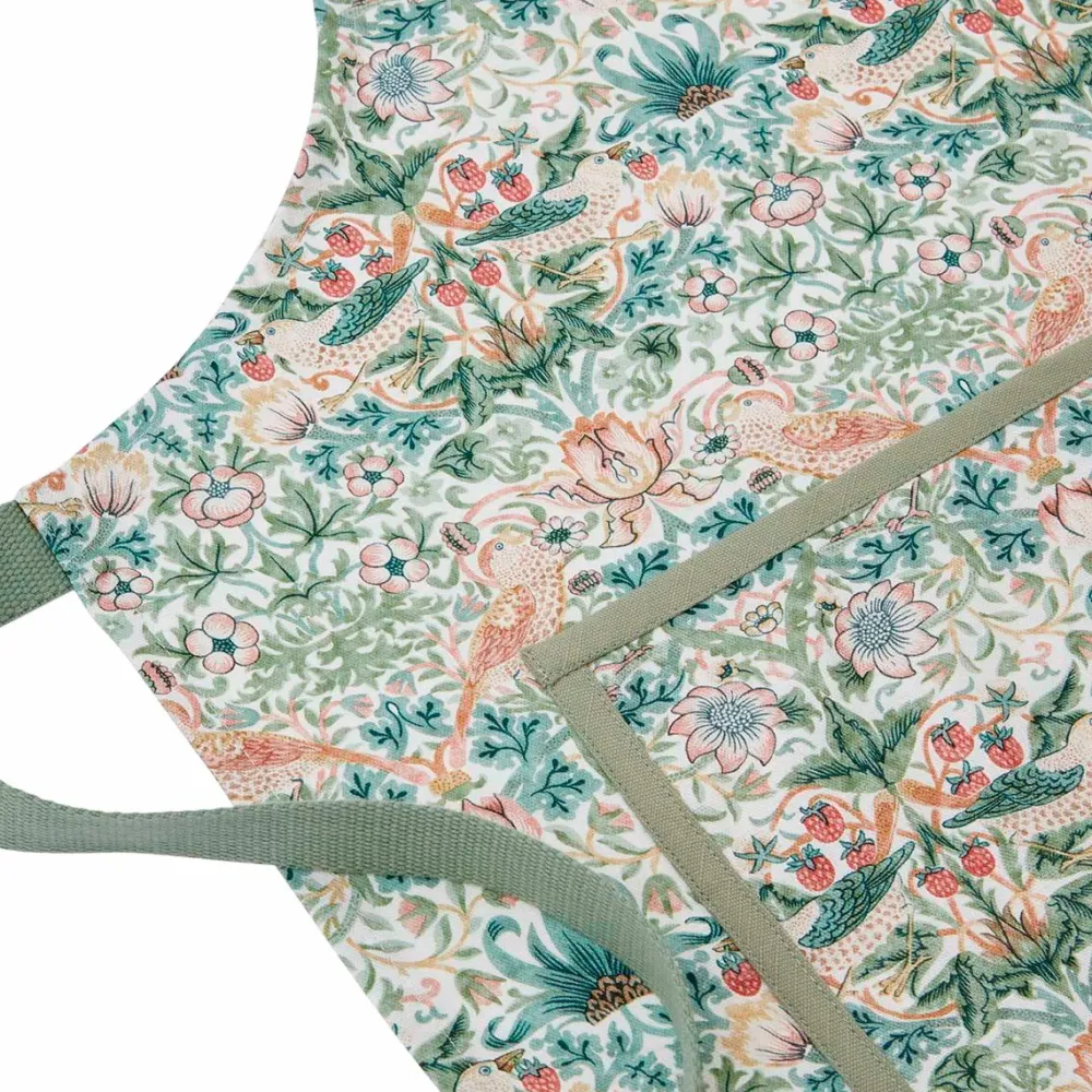 morris & co forklæde strawberry thief cochineal /willow hylder den tidløse kunstneriske talent hos William morris. Fremstillet af slidstærkt bomuld og prydet med det ikoniske strawberry thief mønster i cochineal/willow farver, tilfører det et strejf af elegance og kreativitet til ethvert køkken. Med justerbar halsrem, bæltestropper og en rummelig frontlomme kombinerer det perfekt funktionalitet med raffineret design – en ægte hyldest til klassisk britisk håndværk.