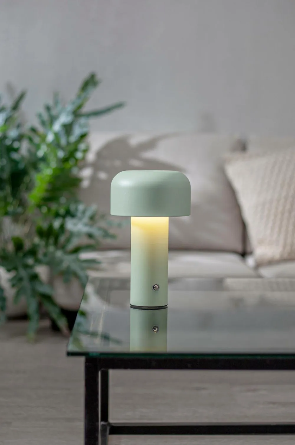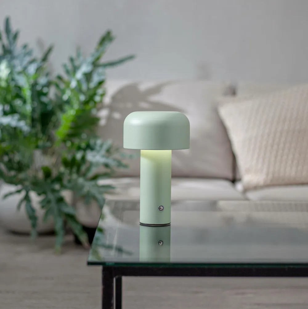 Stilfuld genopladelig bordlampe til indendørs brug med tre valg af farvetemperaturer: varm, kold og dagslys. Justeres nemt med et let tryk på den sølvfarvede knap, der er placeret på lampefoden. Lampen har en lysdæmperfunktion, som justeres ved at holde en finger på knappen i et par sekunder. Brændetid mellem 3-50 timer afhængigt af valg af lysstyrke, fuld opladning af lampen tager ca. 3 timer. Batteri 18650 li-ion, 3,7v 2000 mah, kan ikke udskiftes. Opladningskabel med usb c-stik medfølger. Til indendørs brug.