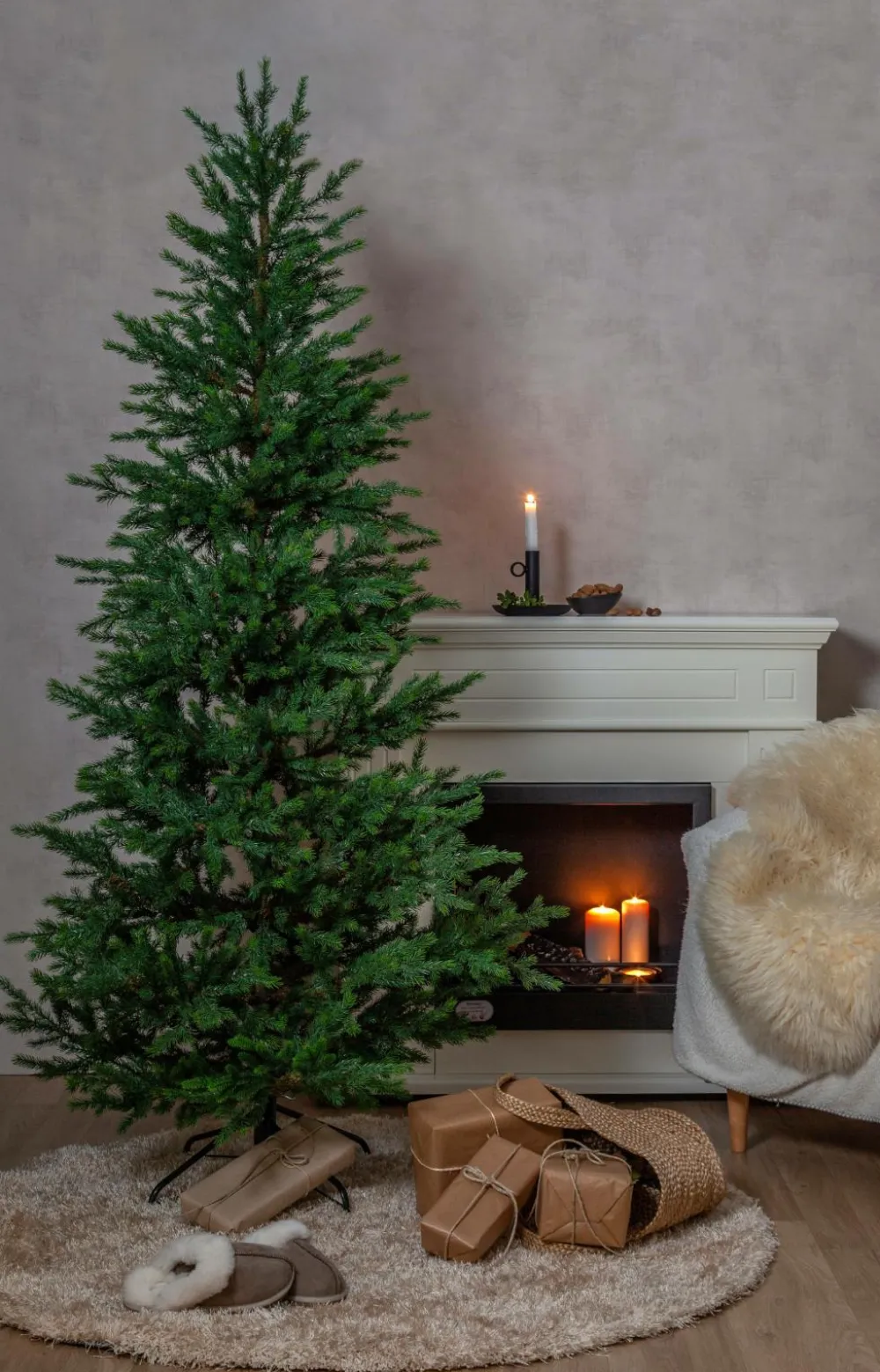 Skønt og virkelighedstro juletræ i en flot grøn farve. Juletræet er 200 cm højt og cirka 96 cm bredt. Til indendørs og udendørs brug.