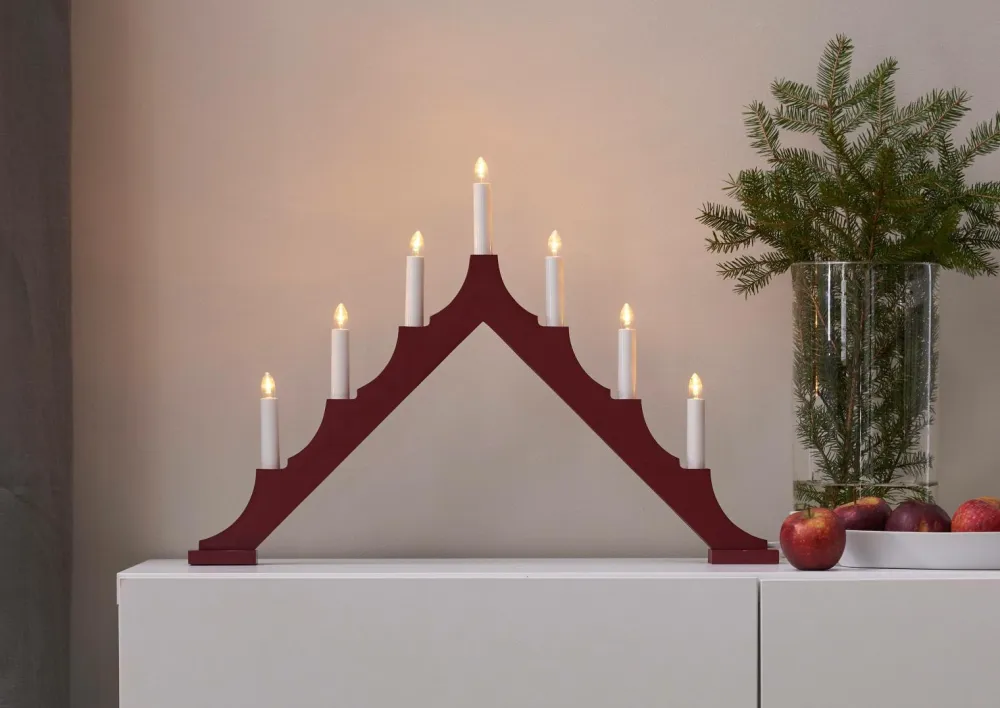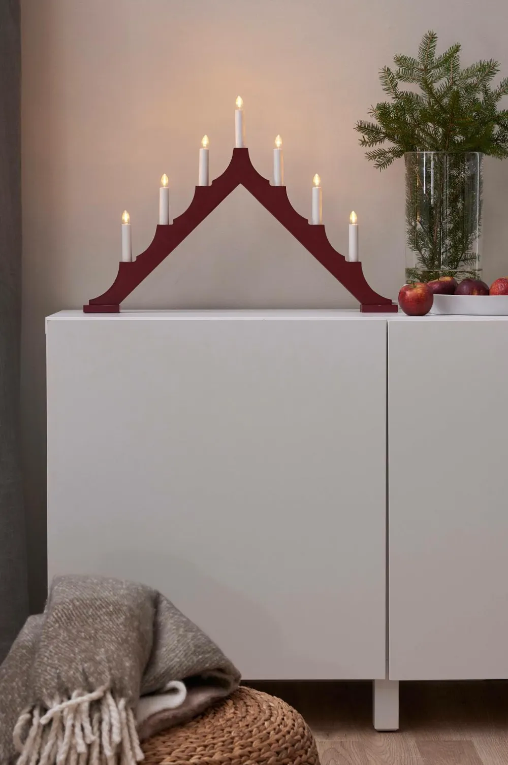 Lysestage lavet af træ. Klassisk formet lysestage med et moderne touch. Flot lysbillede, der skaber den perfekte julestemning i dit vindue.