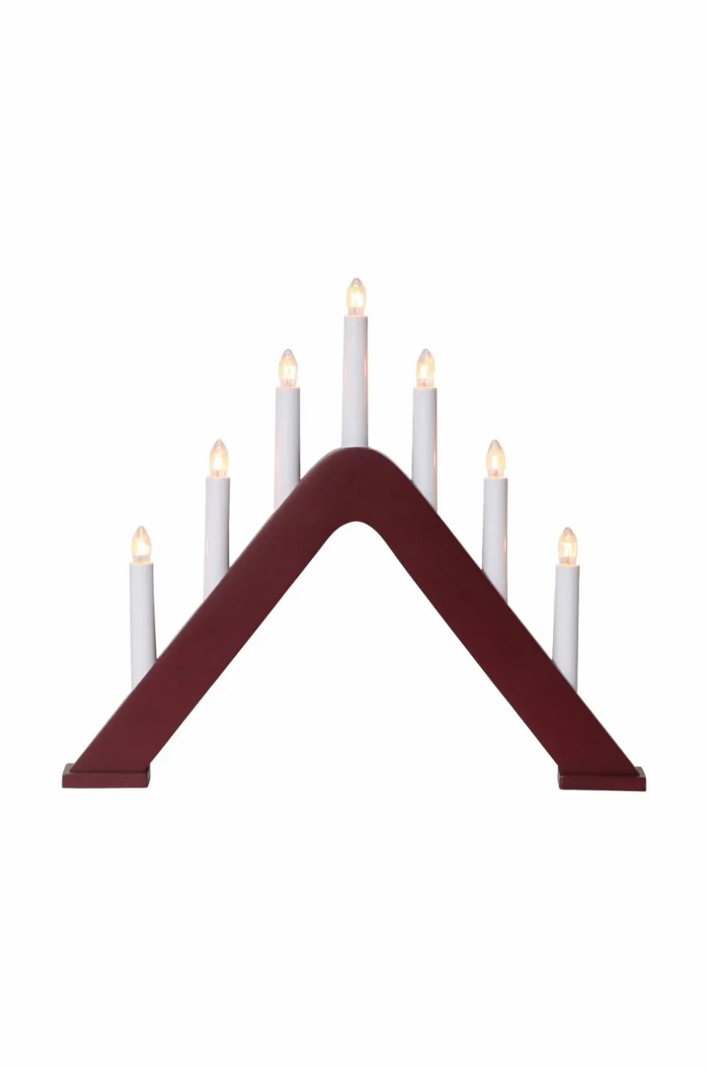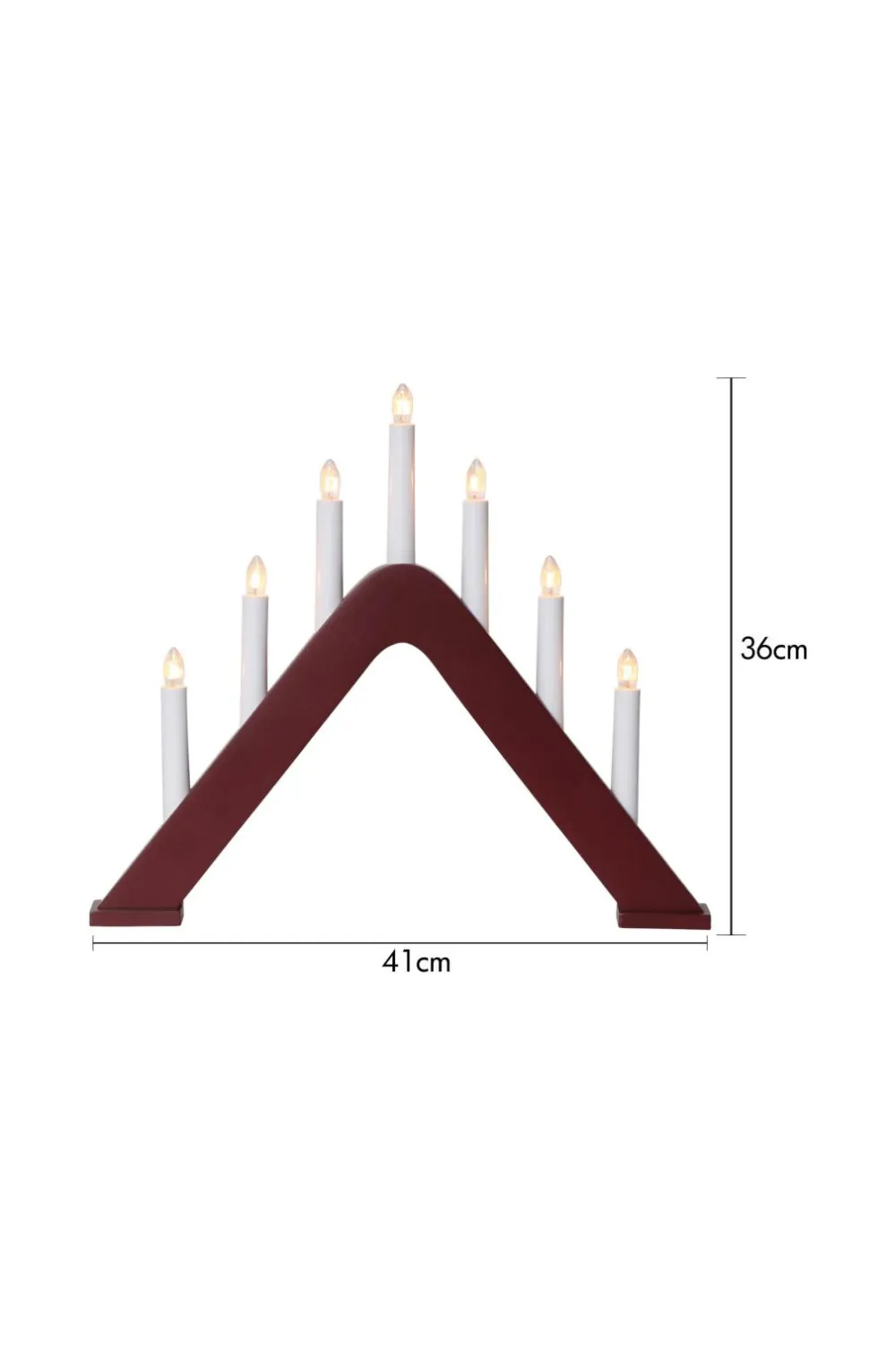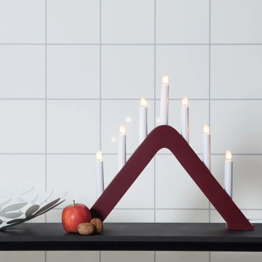 Trælysestage, 7-armet i skønt design. Velegnet i vinduet for en smuk og hyggelig indretning. Skaber en hyggelig adventsstemning i hjemmet. E10-fatning, pærer medfølger. Hvid ledning, 180 cm. Højde 36 cm, bredde/længde 41 cm og dybde 5 cm.