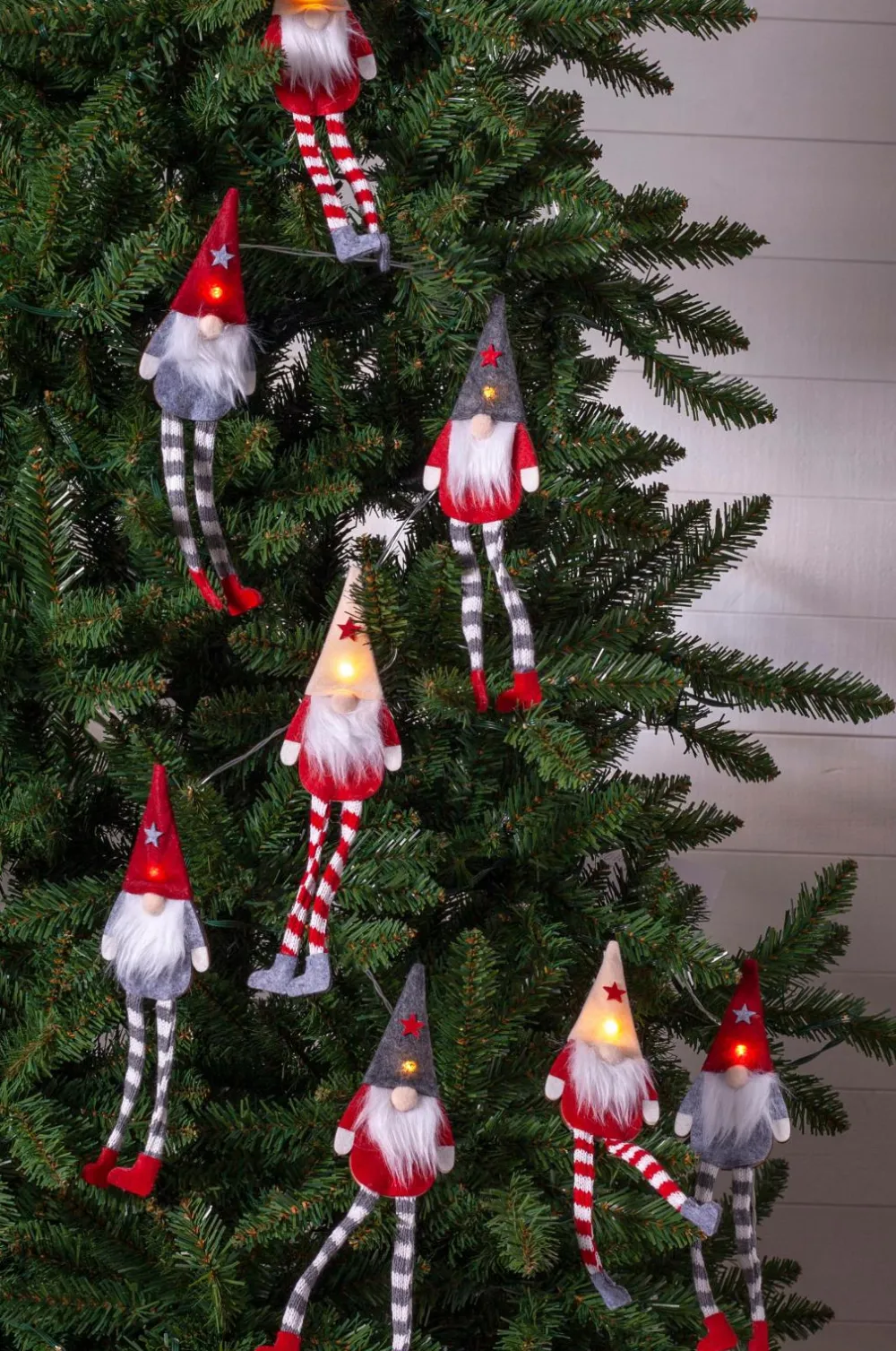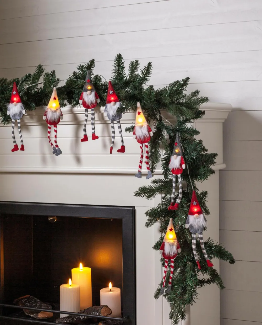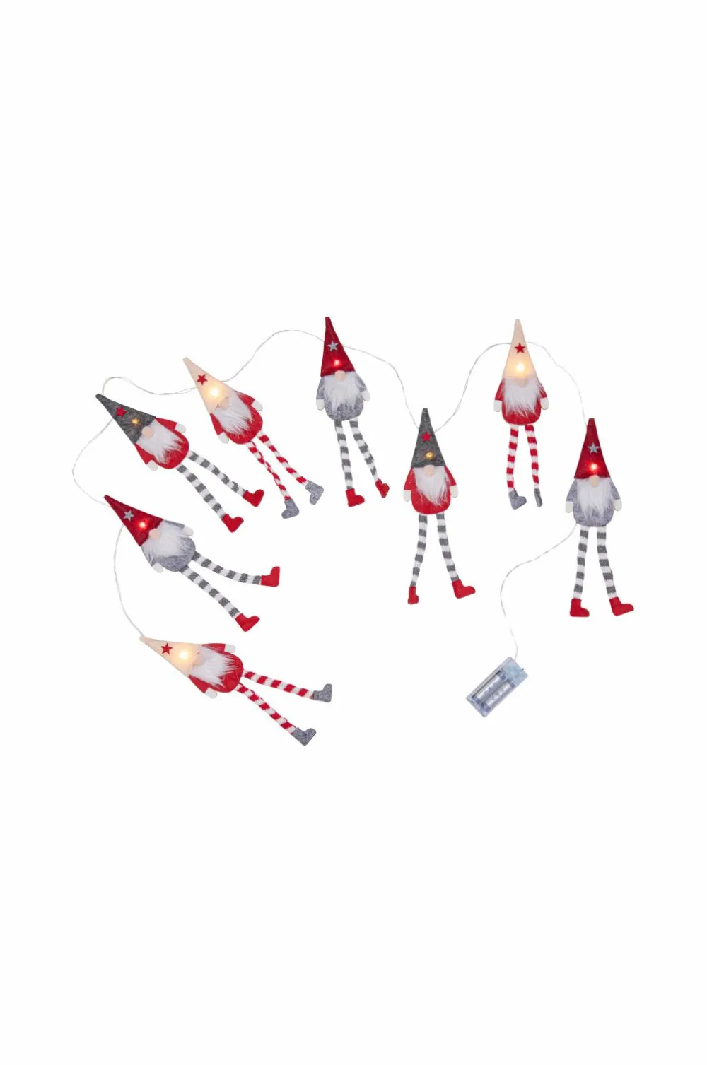 Batteridrevet lyskæde med 8 stk. større julemandsdekorationer af træ og stof i julefarver. Varm hvid led giver et hyggeligt lys. Timerfunktion i batteriboks. Pynt f.eks. juletræet eller brug det som borddekoration.