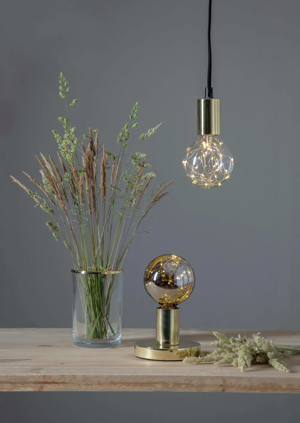 Mål: Bredde 12, dyb 12, højde 17 cm. Lampefod i metal. Ledningslængde 1,8 m. 230 V. E27 sokkel. Lyskilde medfølger ikke.