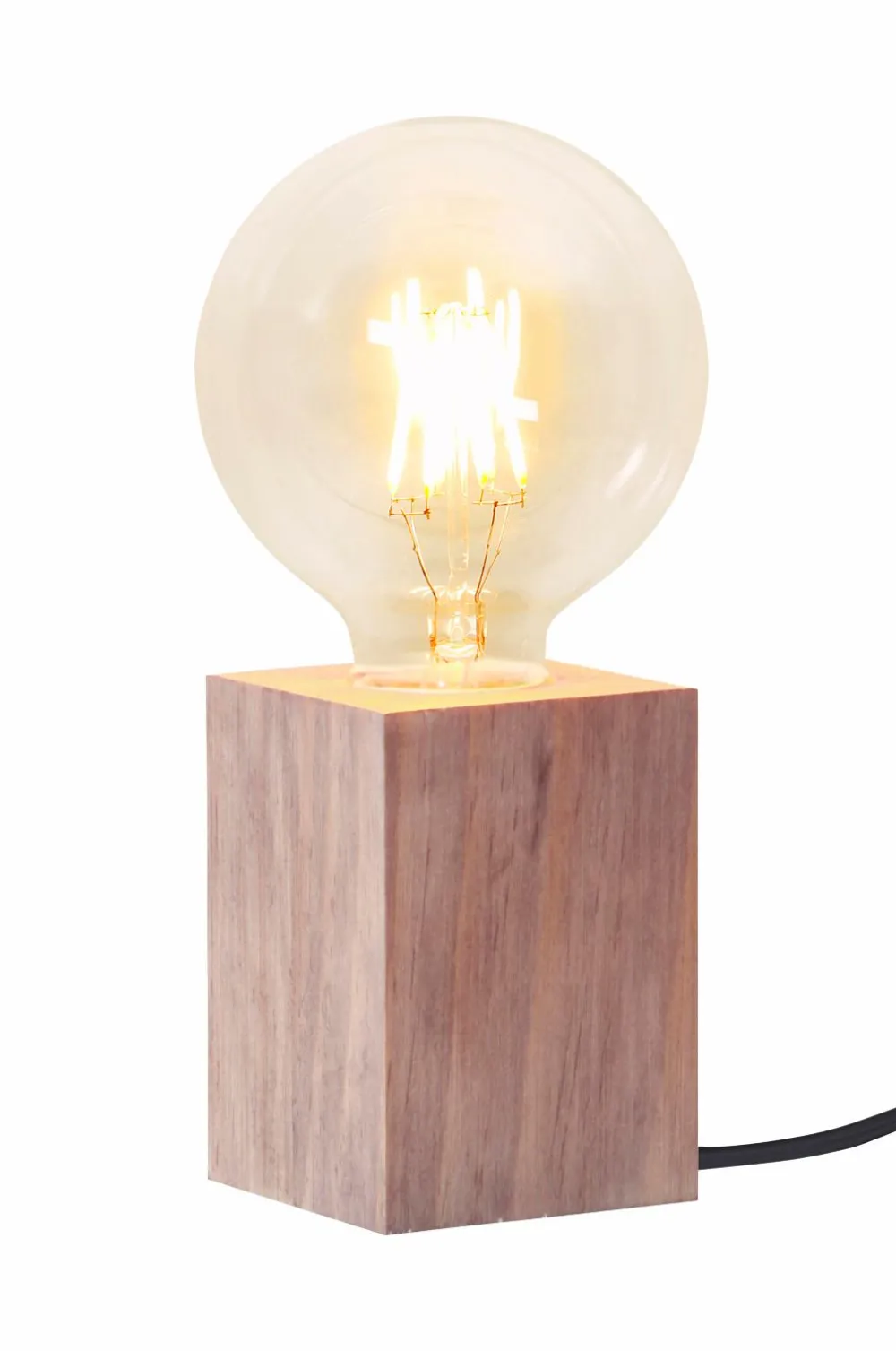 Mål: Bredde 7, dyb 7, højde 10 cm. Lys lampefod i træ. Sort ledning 1,8 m. 230V. E27 sokkel. Lyskilde medfølger ikke.
