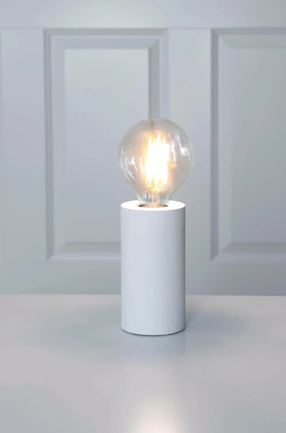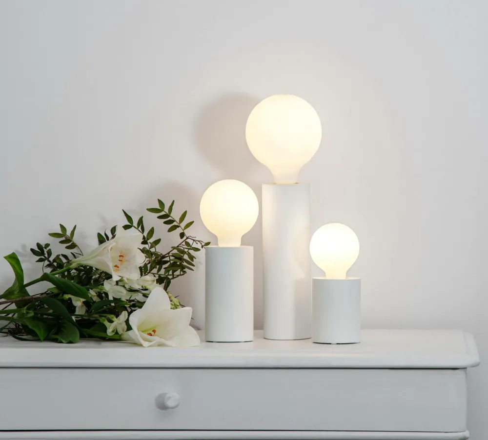 Mål: Bredde 8, dyb 8, højde 15 cm. Rund lampefod i træ. Ledningslængde 1,8 m. 230V. E27 sokkel. Lyskilde medfølger ikke.