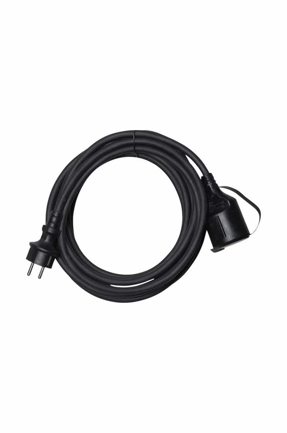 Forlængerkabel til udendørs brug. 7 meter langt sort kabel med et stik. IP44. Pære medfølger ikke.