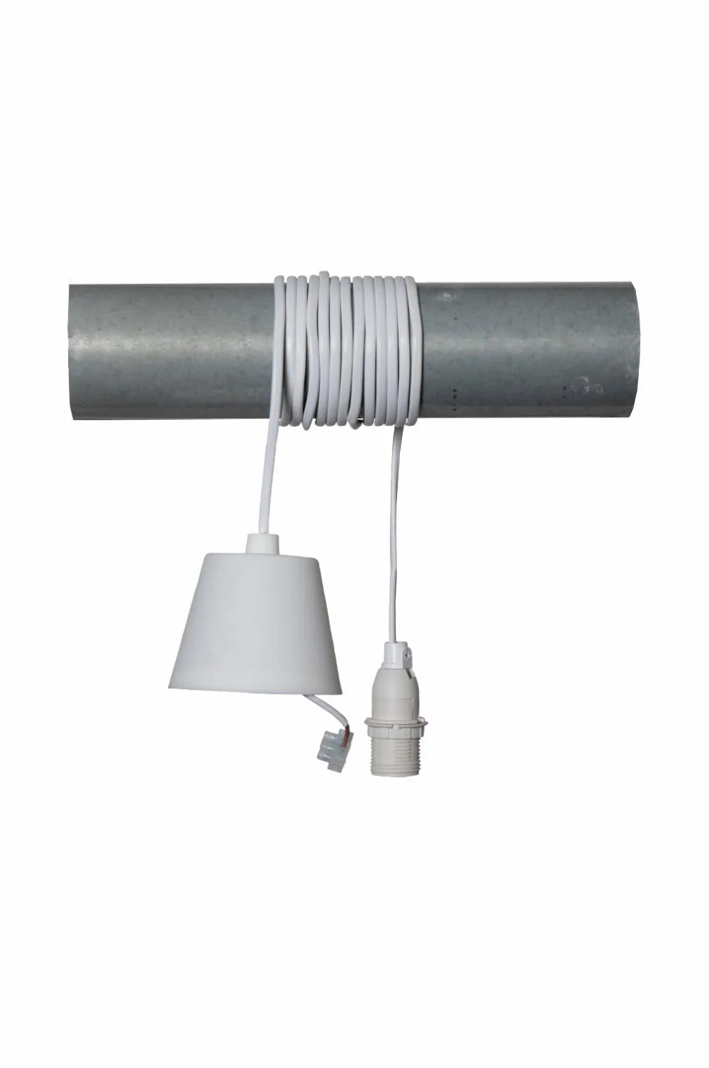 Ledningssæt med loftskål, e14-lampeholder med ledning, der er 3,5 m og kan justeres kortere efter behov. Kombiner ledningssættet med en flot lyskilde. Kan bruges til papirstjerner.